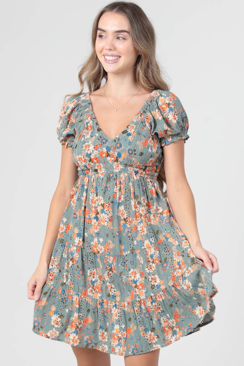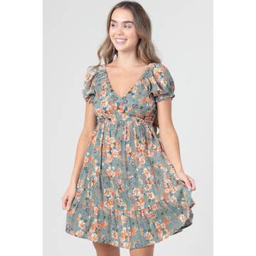 Robe évasée à manches bouffantes smockée à fleurs avec poches en vente B2B