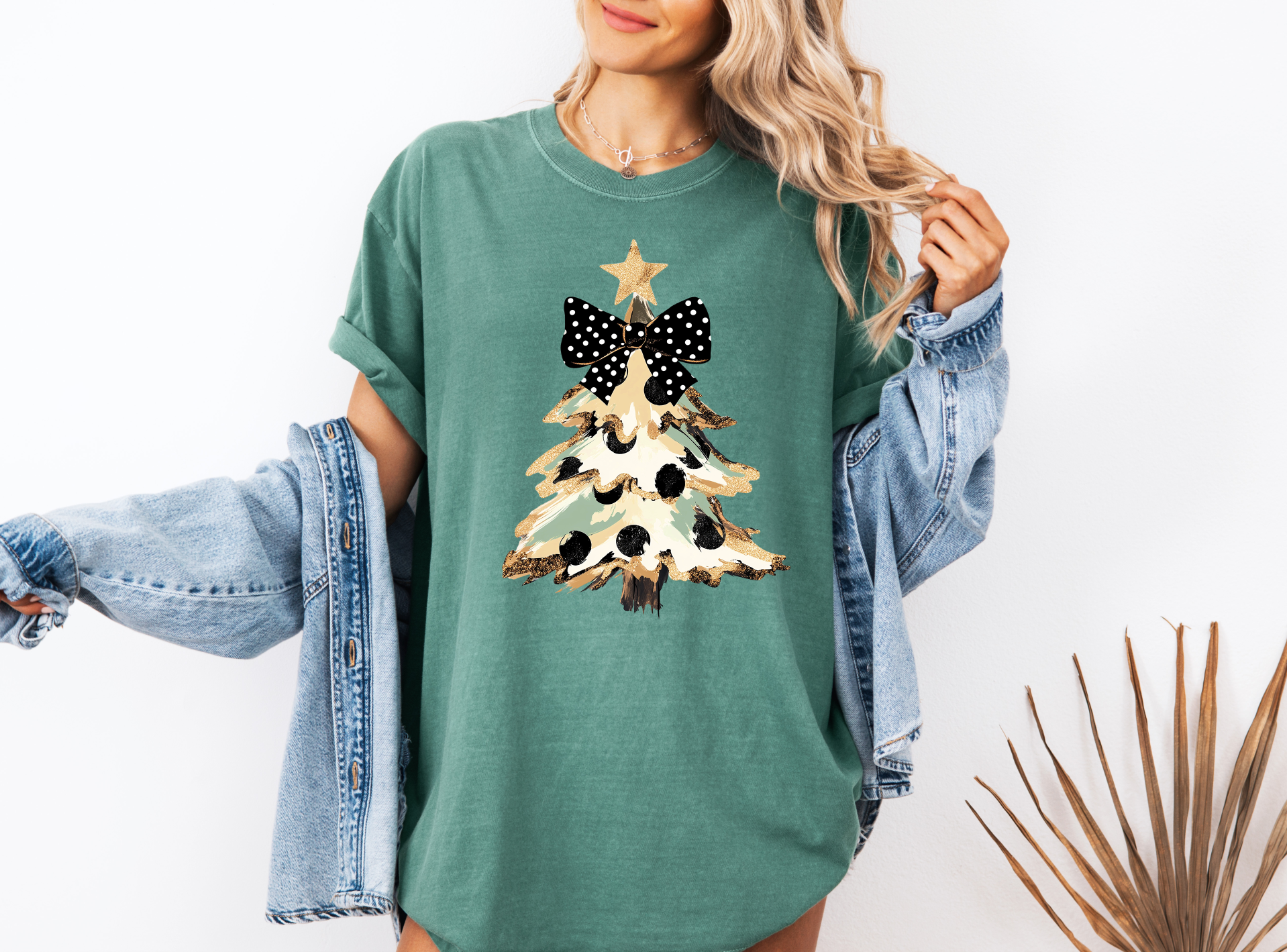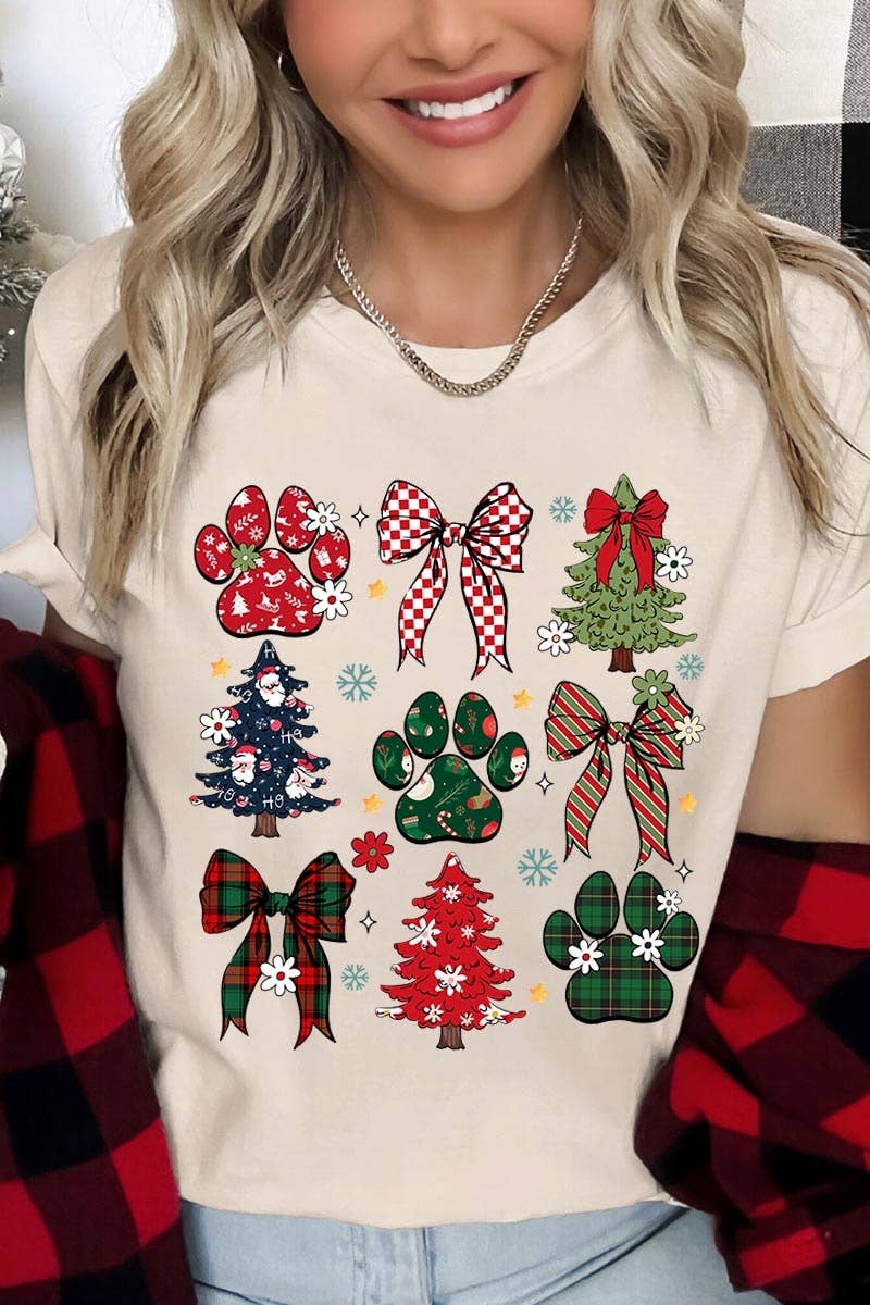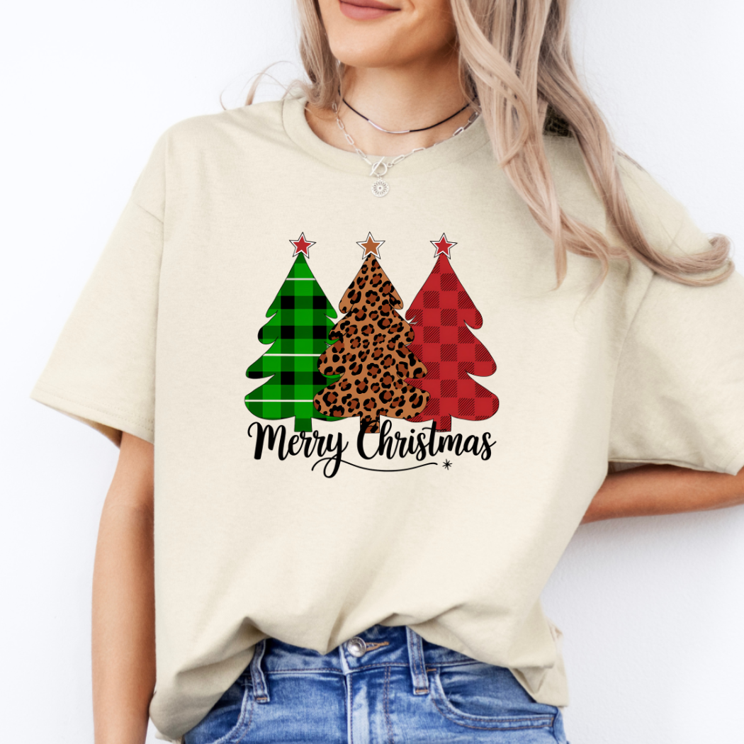 T-shirt à manches courtes en forme de sapin de Noël à nœud léopard en vente B2B