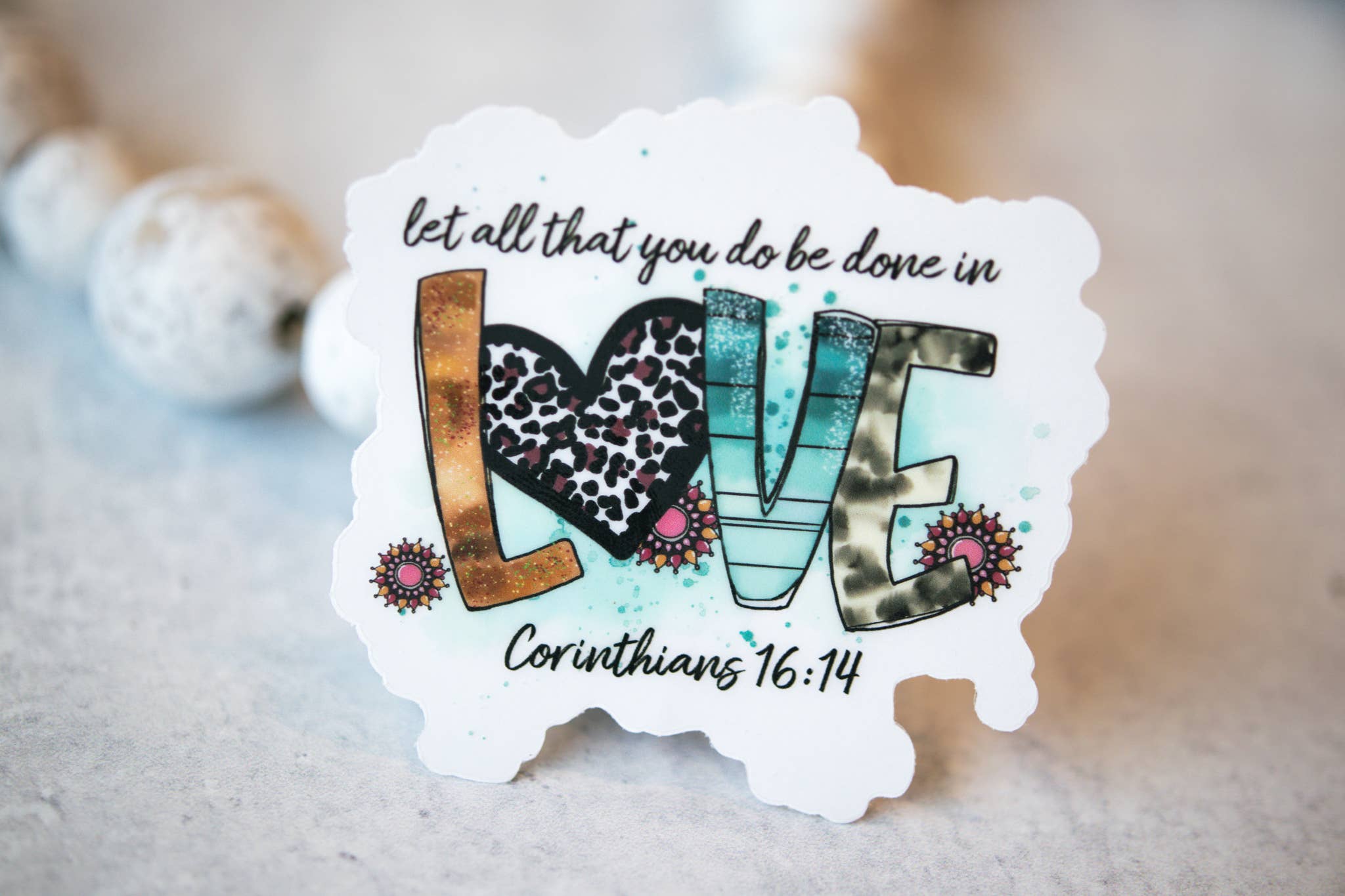 1 Corinthians 16:14 love sticker | Cadeaux chrétiens en vente B2B