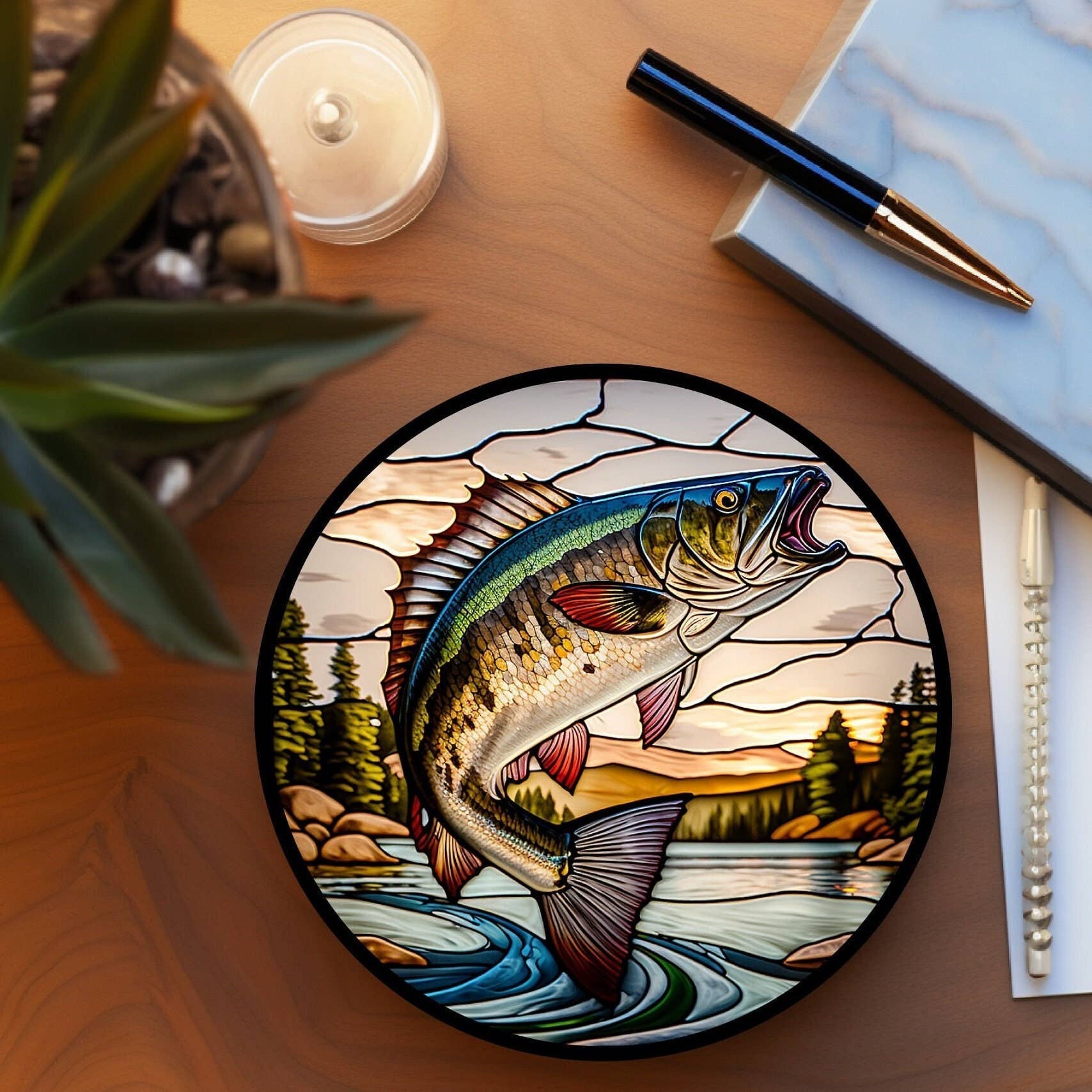 Sous-verres en céramique Koi et poisson rouge en vitrail pour décoration intérieure en vente B2B