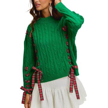 Pull en maille festif avec le mot « Merry » brodé en fil métallique. - Manches longues avec poignets côtelés ornés d’un détail rayé assorti - Broderie métallique scintillante pour une touche brillante et festive - Coupe décontractée et confortable, idéale pour un style casual pendant les fêtes MESURES DU MODÈLE (TAILLE S) : - Longueur totale : 66 cm (26 pouces) - Tour de poitrine : 53,3 cm (21 pouces) - Largeur d’épaule : 55,9 cm (22 pouces) - Longueur des manches : 50,8 cm (20 pouces) Composition : 100 % acrylique Le mannequin mesure 1,78 m (5'10") | Tour de poitrine 86 cm (34") | Taille 61 cm (24") | Hanches 89 cm (35") et porte une taille S.