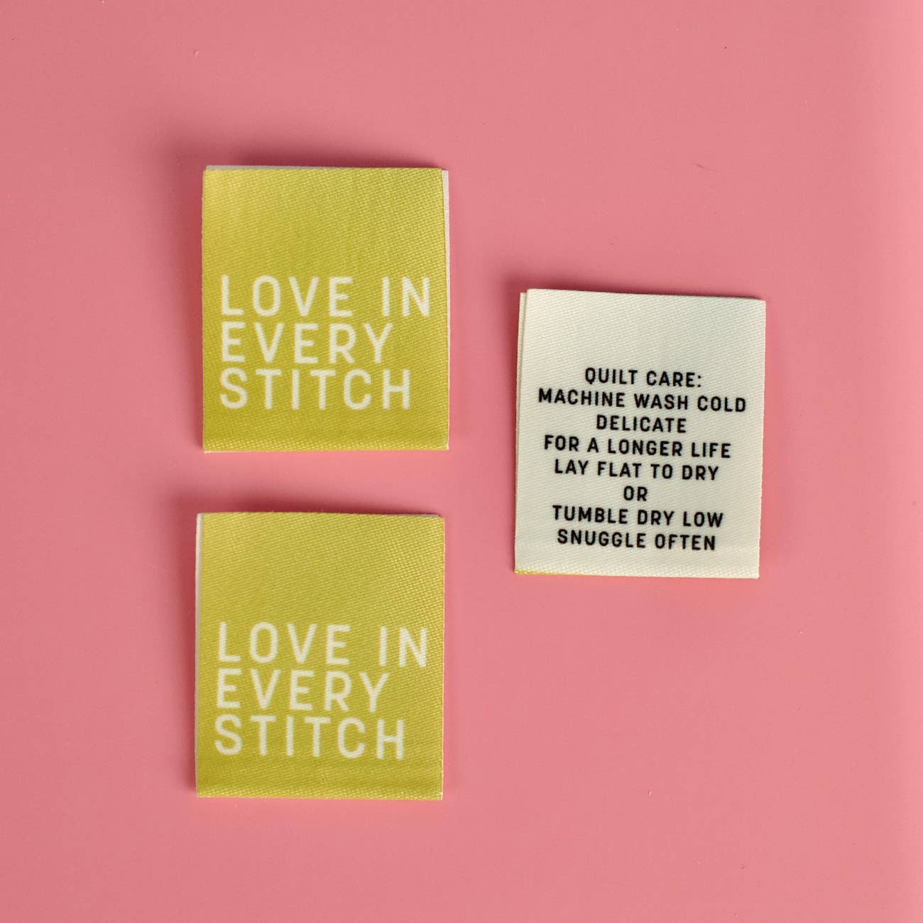 Ajoutez une touche personnelle à chaque projet avec nos étiquettes premium à coudre pour designers. Conçues avec soin pour les quilteuses, couturières et créatrices, ces étiquettes en tissu de haute qualité sont parfaites pour vos vêtements faits main, quilts, sacs et accessoires. Chaque étiquette est conçue pour refléter votre style unique — que vous offriez un quilt précieux, vendiez vos créations ou ajoutiez simplement un message sincère à votre travail. Faciles à coudre dans les coutures, ourlets ou dos de quilts. Pack de 3, 1-1/2" x 1-3/4" - Pli central Satin lourd brodé - lavable en machine Emballé dans un sac transparent Design original par Amy Hamberlin Fabriqué en Inde Copyright Kati Cupcake 2024. Tous droits réservés