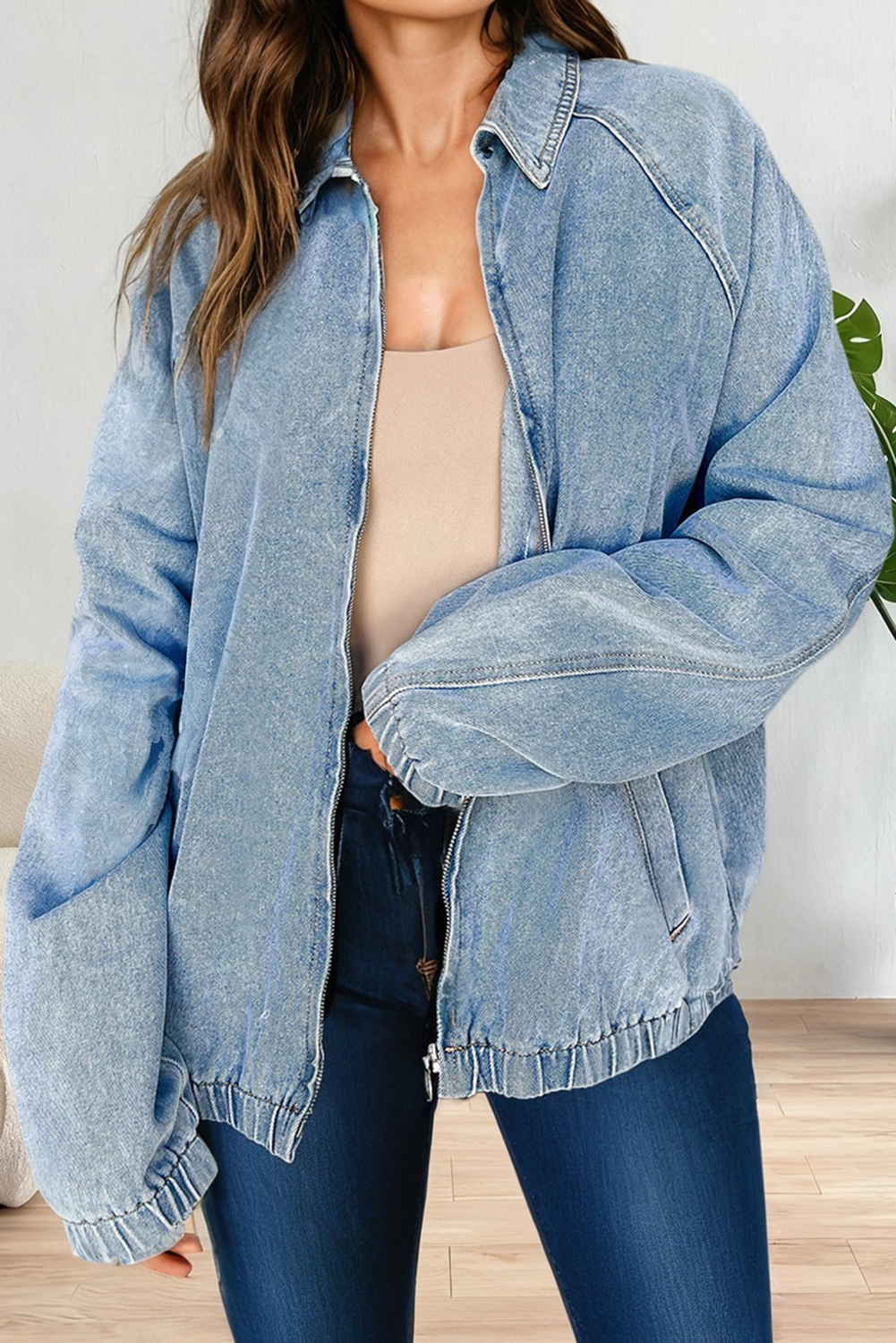 Veste en jean JK123Y avec doublure et col en fourrure amovibles