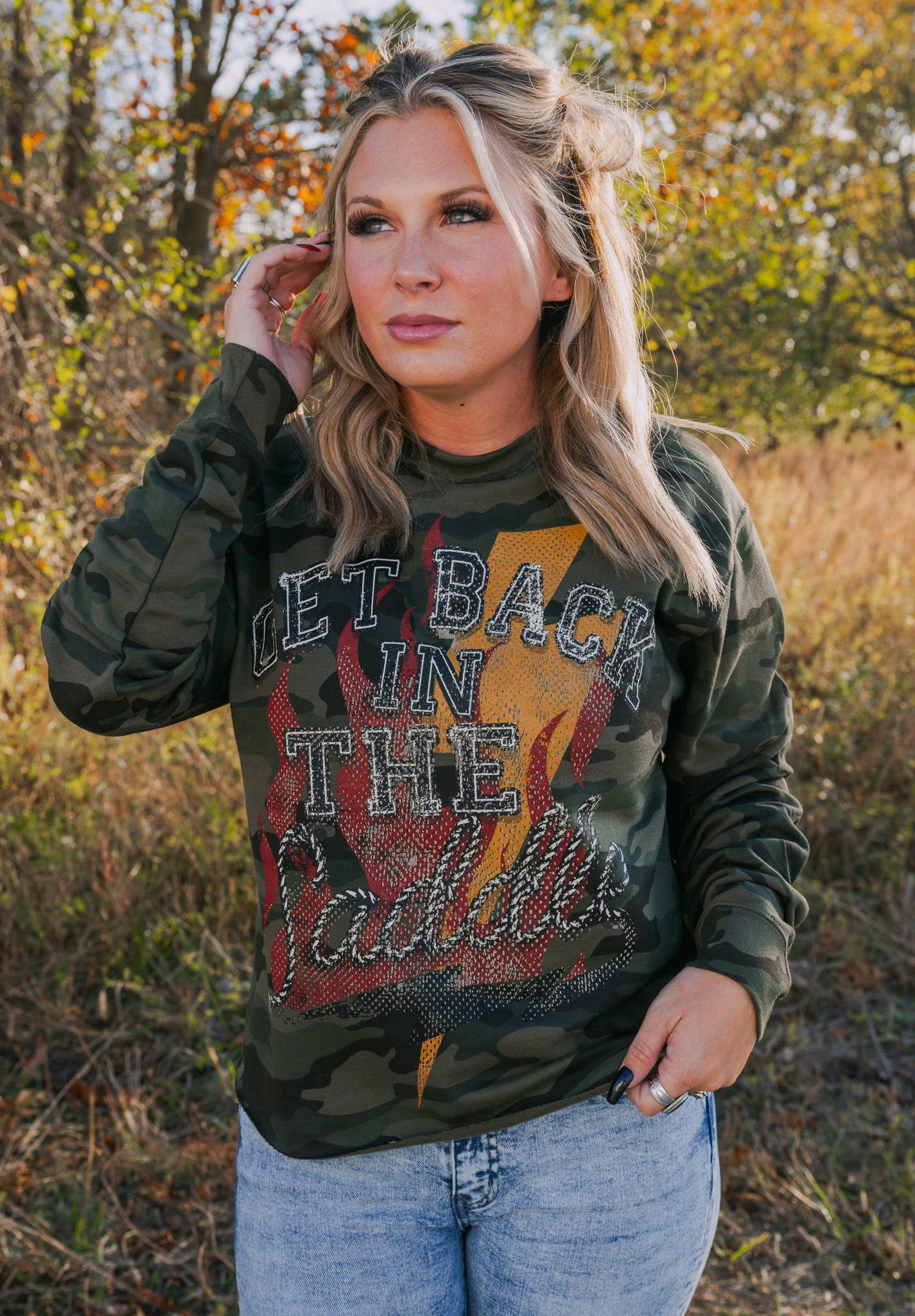 À enfiler pour un dîner au bord du lac ou un feu de camp avec vos amies ! Confortable, chaud et mignon. Présente un bord brut et une impression pleine écran à l'avant. 55% coton, 45% polyester Coupe décontractée Guide des tailles