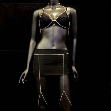 Dansez toute la nuit avec notre soutien-gorge bustier à franges et strass en résille. Portez-le en couche supplémentaire pour compléter une tenue de festival ou seul pour une touche sexy et surprise. Détails du produit : - Confectionné en résille luxueuse ornée de strass tombants. - Bonnets triangle ouverts avec motif en chaînes croisées. - Dos ouvert audacieusement avec dos nu profond et col halter. - Ajustable grâce aux chaînes et fermoir pince de homard pour un maintien flexible. Entretien et composition : - 60 % verre, 40 % alliage de zinc - Nettoyage localisé uniquement. Ne pas laver.