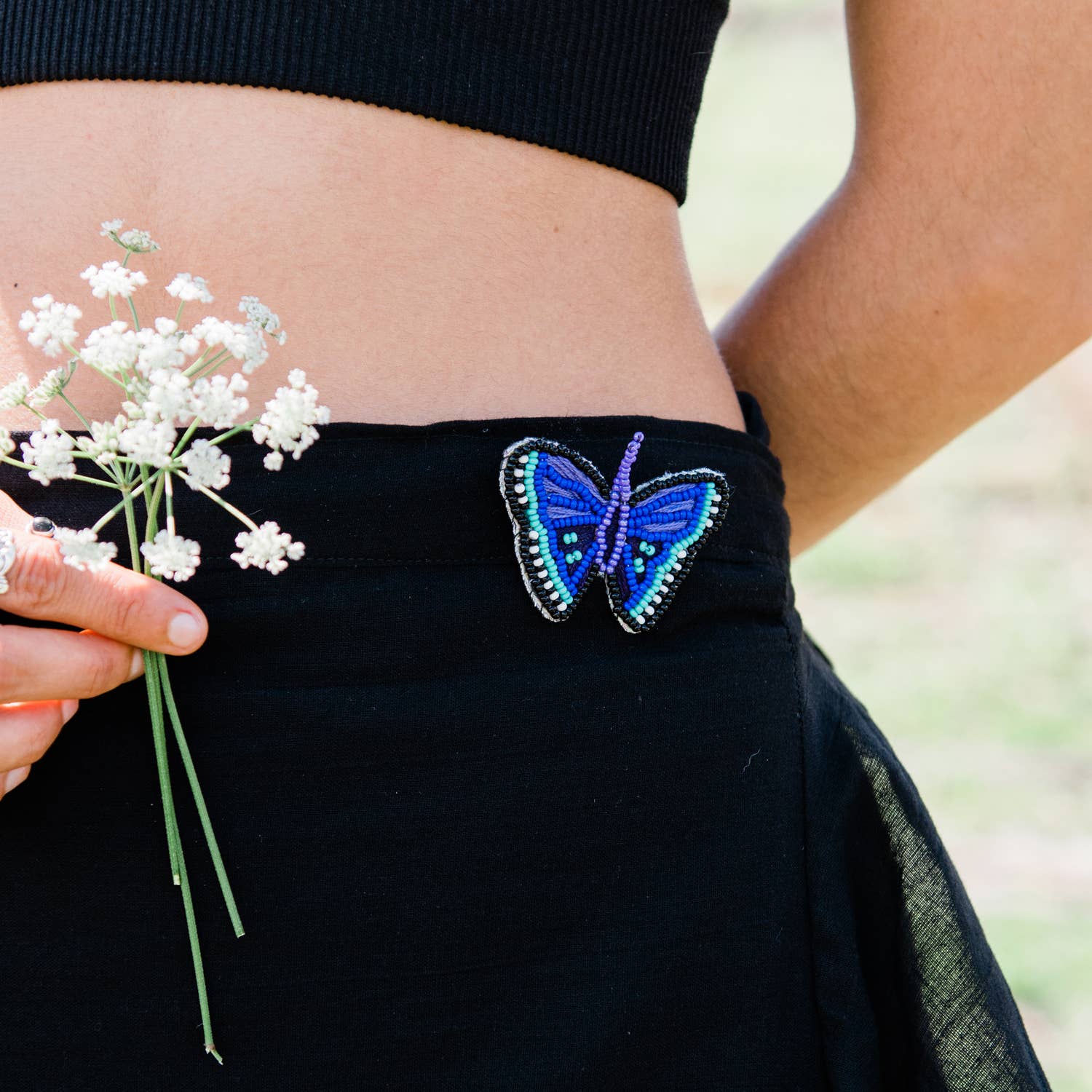 Dans notre collection Bala Mani, des artisans appliquent des techniques traditionnelles de perlage à la main pour créer des designs colorés et étincelants combinant perles et strass en verre. Cette broche papillon délicate mais robuste présente des détails de passementerie appliqués à la main avec soin. Les papillons sont à la mode, rendant hommage à la décennie emblématique des années 90 et symbolisent la transformation. C'est un motif qui résiste à l'épreuve du temps. Découvrez notre collection complète de broches Bala Mani et exposez-les ensemble. Dimensions : 5 cm L x 3,8 cm H Toute la collection de Matr Boomie est faite à la main, équitable et durable.
