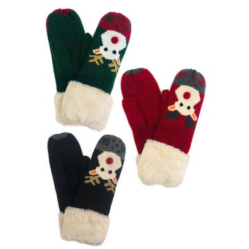 Gants en fausse fourrure imprimés Snowman