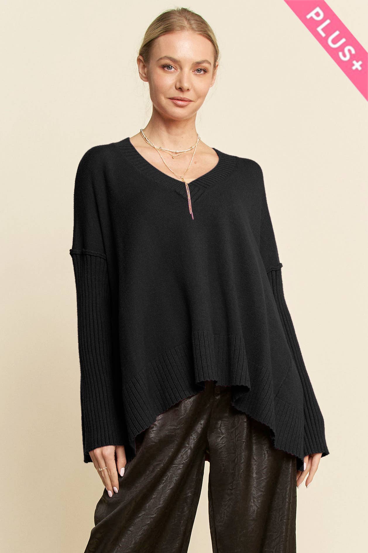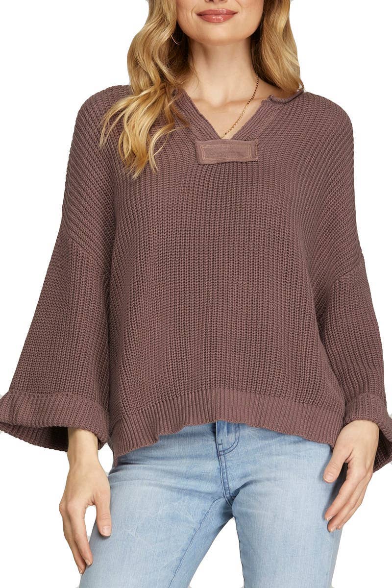 ....SI-21303 Pull à côtes à manches longues et col en V