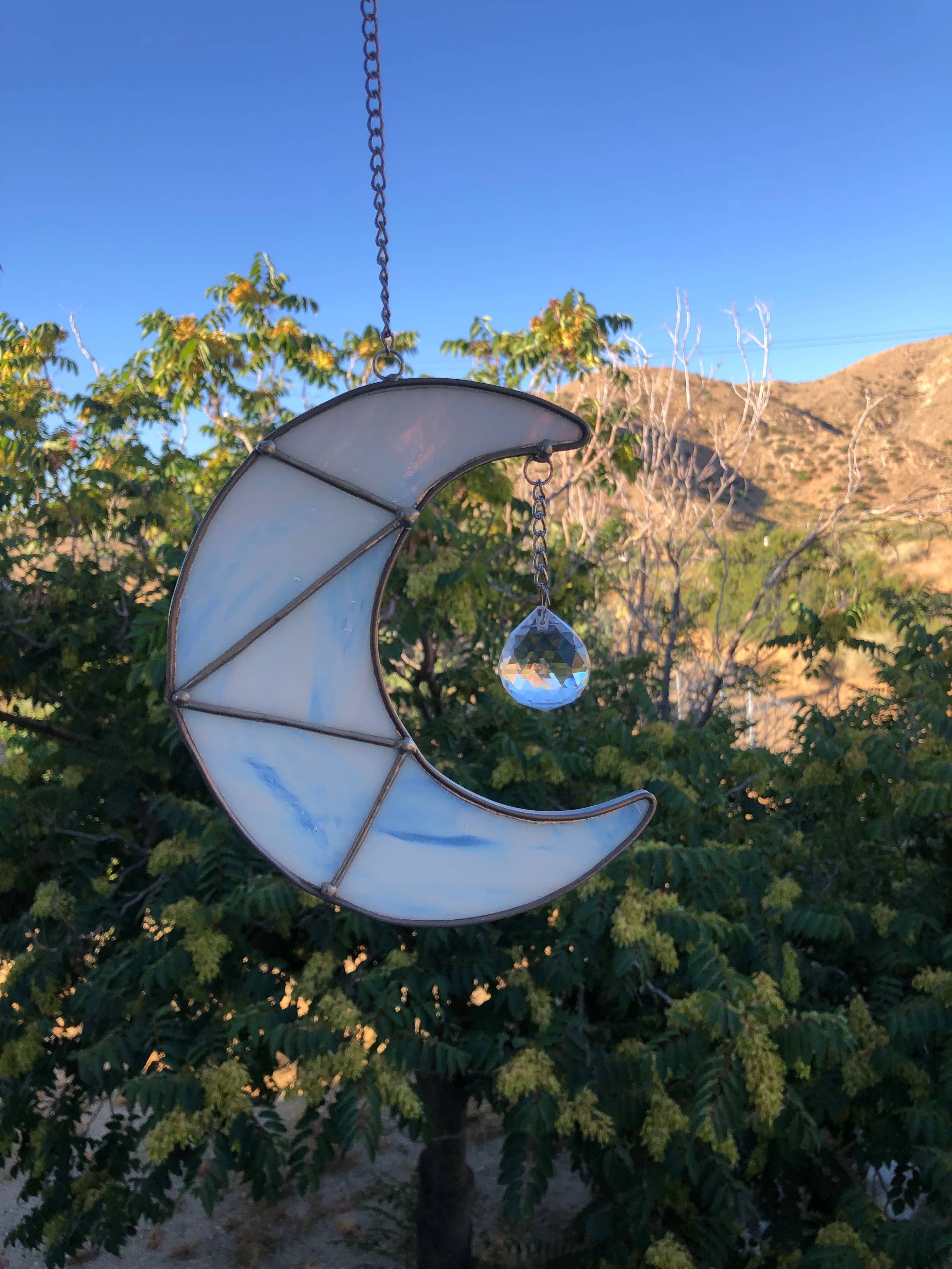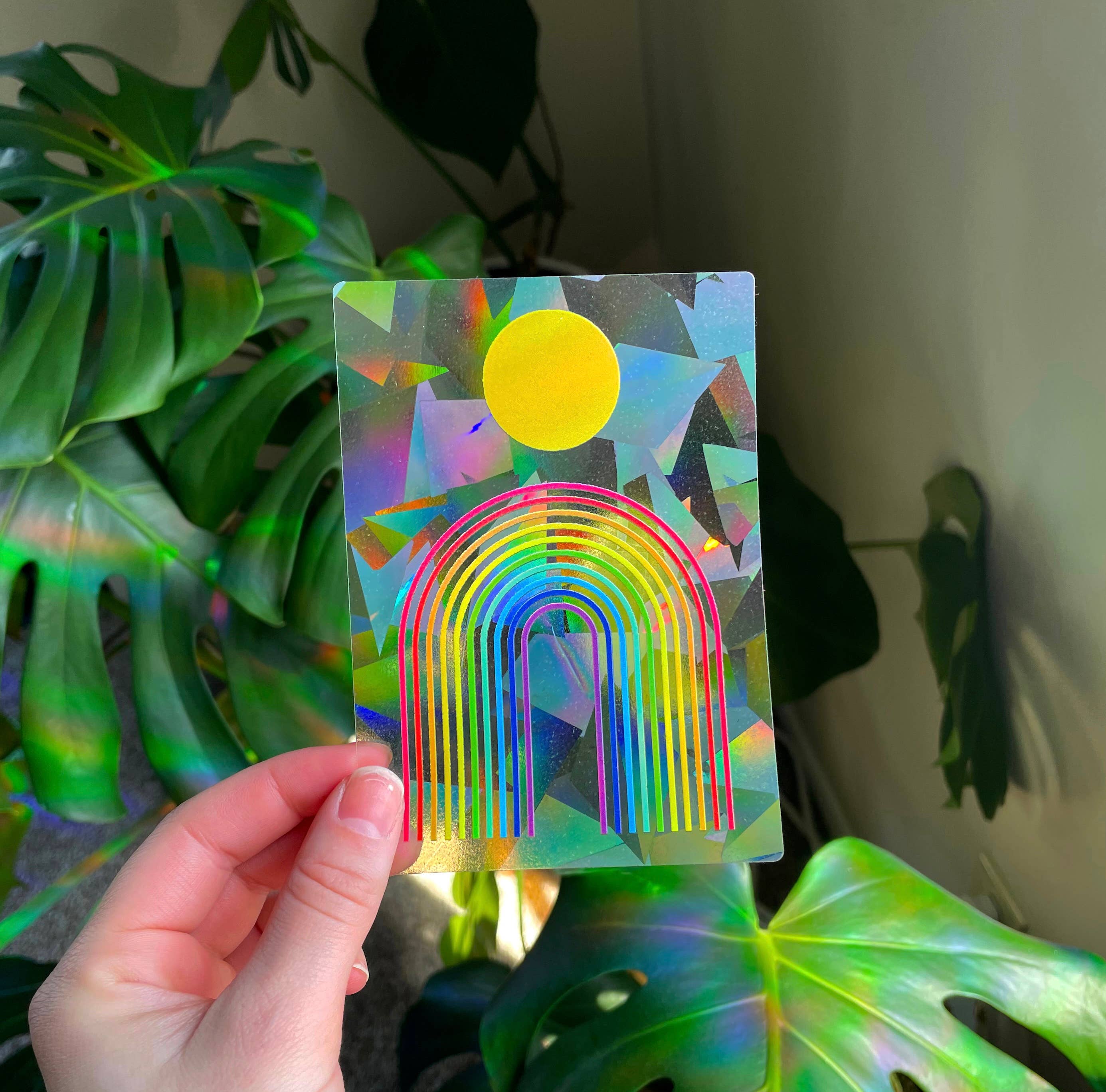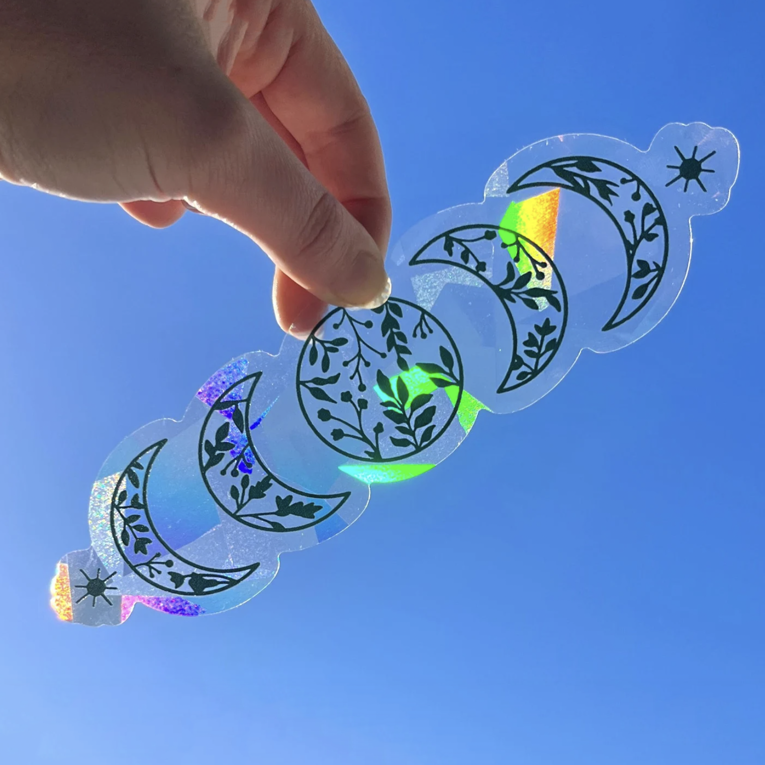 Autocollant prismatique arc-en-ciel représentant la lune avec des pins (Nature sur la lune). Placez cet autocollant en vinyle prismatique sur n’importe quelle fenêtre de votre maison ou bureau, et le soleil créera une magie d’arc-en-ciel sur vos murs ! Personnellement, je le place sur une fenêtre orientée plein sud, et les arcs-en-ciel envahissent vraiment la pièce le matin. Dimensions : 12,7 cm x 9,5 cm. Pour une meilleure durée de vie, placez l’autocollant à l’intérieur de la fenêtre.