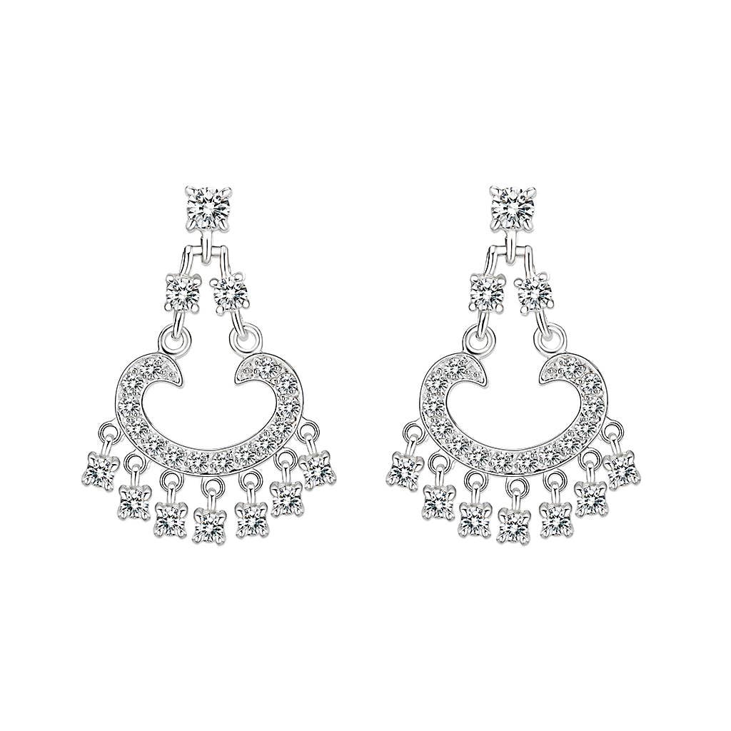 Boucles d'oreilles pendantes elfe doré cristal blanc