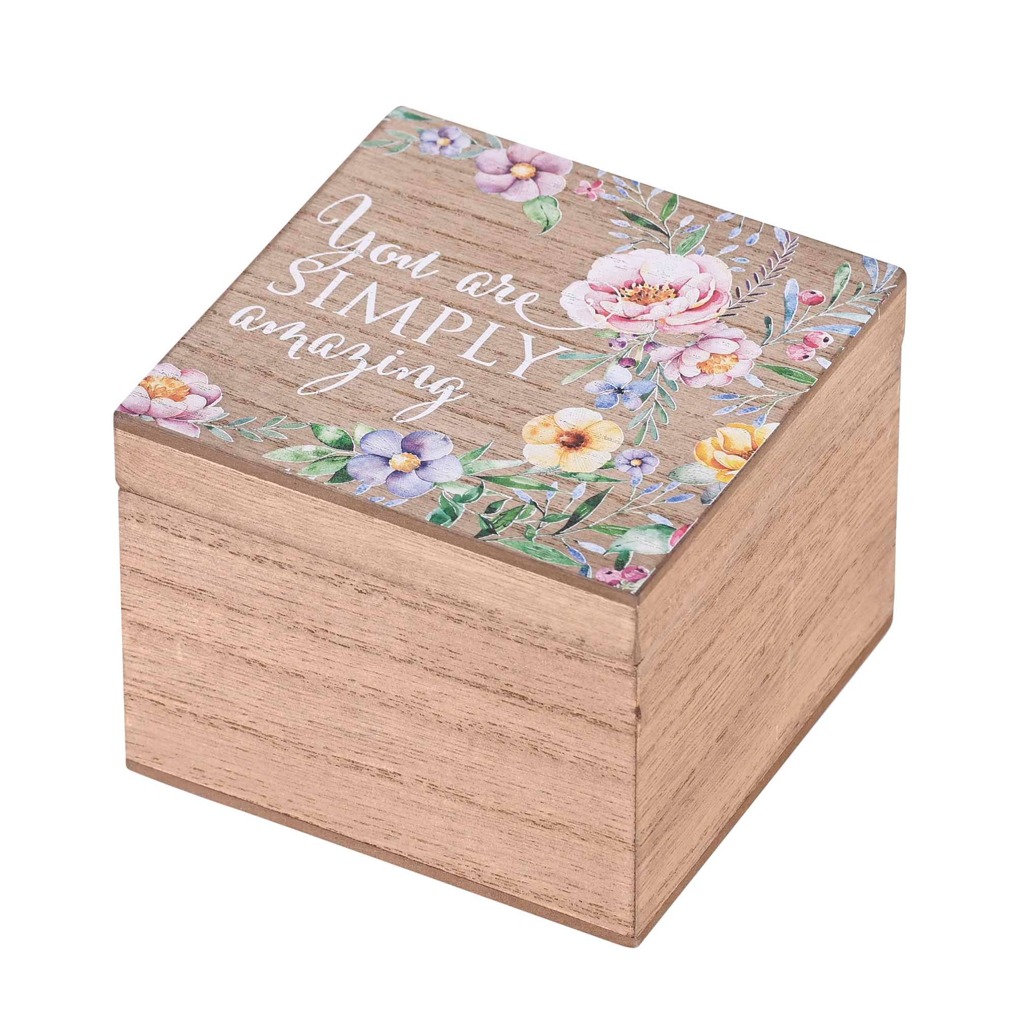 Cette boîte à souvenirs sur le thème du baptême est le cadeau parfait pour conserver de petits souvenirs. Le dessus du couvercle amovible représente Galates 3:27 : Car tous ceux d'entre vous qui ont été baptisés dans le Christ se sont revêtus du Christ. La taille globale de la boîte est de 4 x 4 x 3. Fabriqué en bois MDF avec finition texturée en grain de bois à l'extérieur.