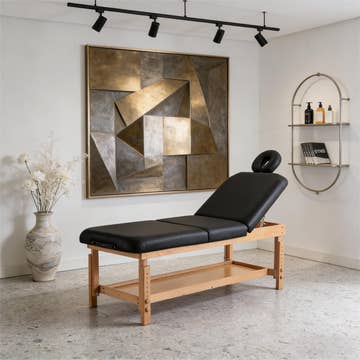 Table de massage professionnelle noire avec rangement et appui-tête en vente B2B