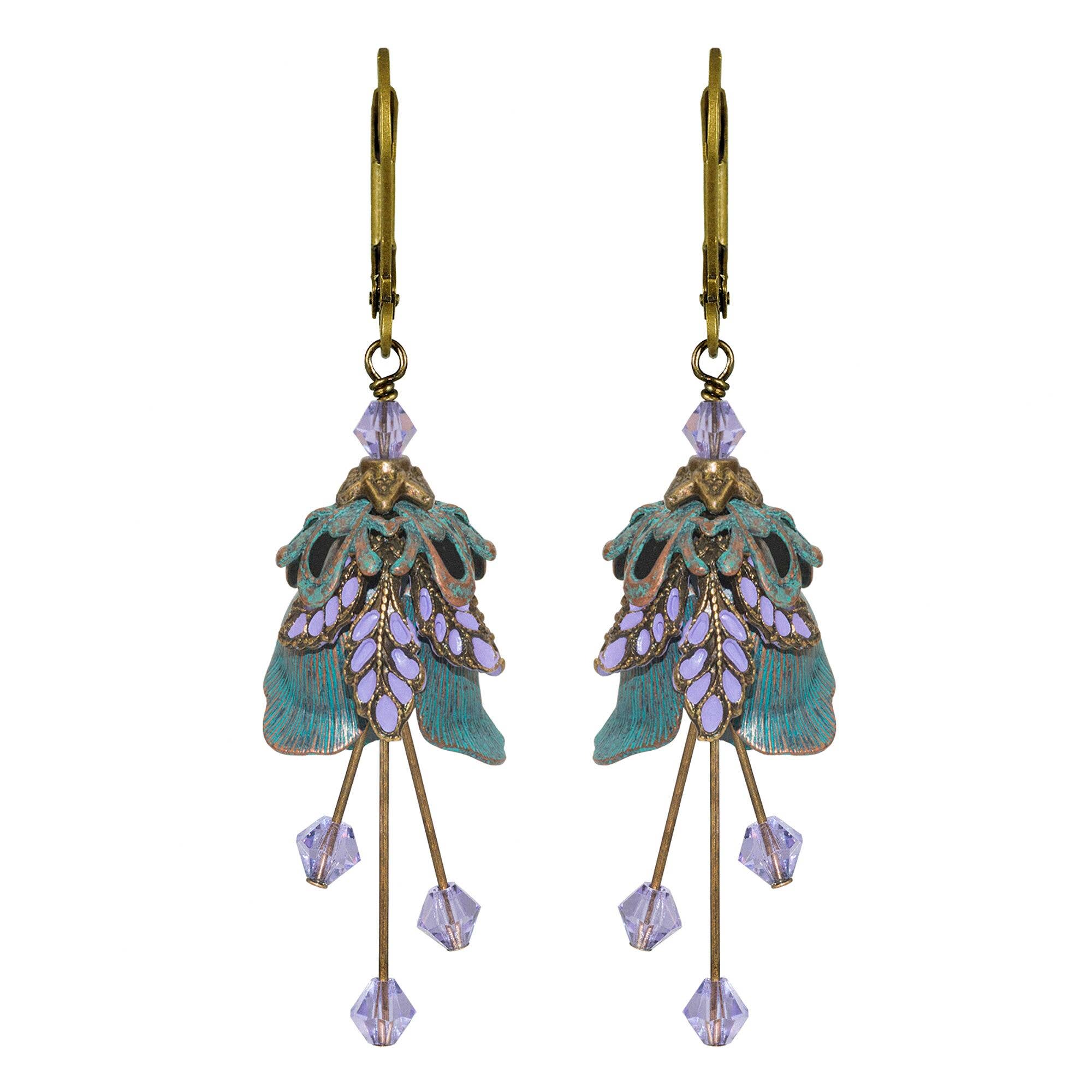 Ces boucles d'oreilles fleurs au look vintage sont si jolies et délicates ; vraiment frappantes. Les accents de bicône en cristal de 6 mm en haut et en bas les font vraiment scintiller ! Ce look classique en fait un excellent cadeau ou accessoire de fête de mariage, ou un merveilleux cadeau pour toute occasion. Ou juste pour vous... Disponible en 13 couleurs. * 5,1 cm de long * Fils d'oreille en bronze antique à levier * Sans plomd/sans nickel * Couleurs disponibles : * Vert émeraude * Rouge Siam * Rose Rose * Bleu marine * Bleu clair * Bleu royal * Bleu de Prusse * Brun Chocolat * Vert péridot * Violet * Lilas * Noir * Blanc
