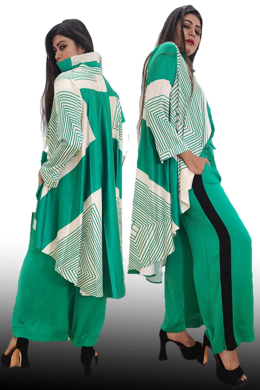 Cette robe transparente présente un devant boutonné, un col à revers et une ceinture à nouer. Longue, de longueur maxi avec des manches longues en forme de lanterne. Camisole incluse. Pas d'élasticité.