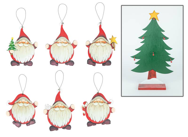 Ensemble de 3 ornements en bois Santa Eco inspirés de la Grèce en vente B2B
