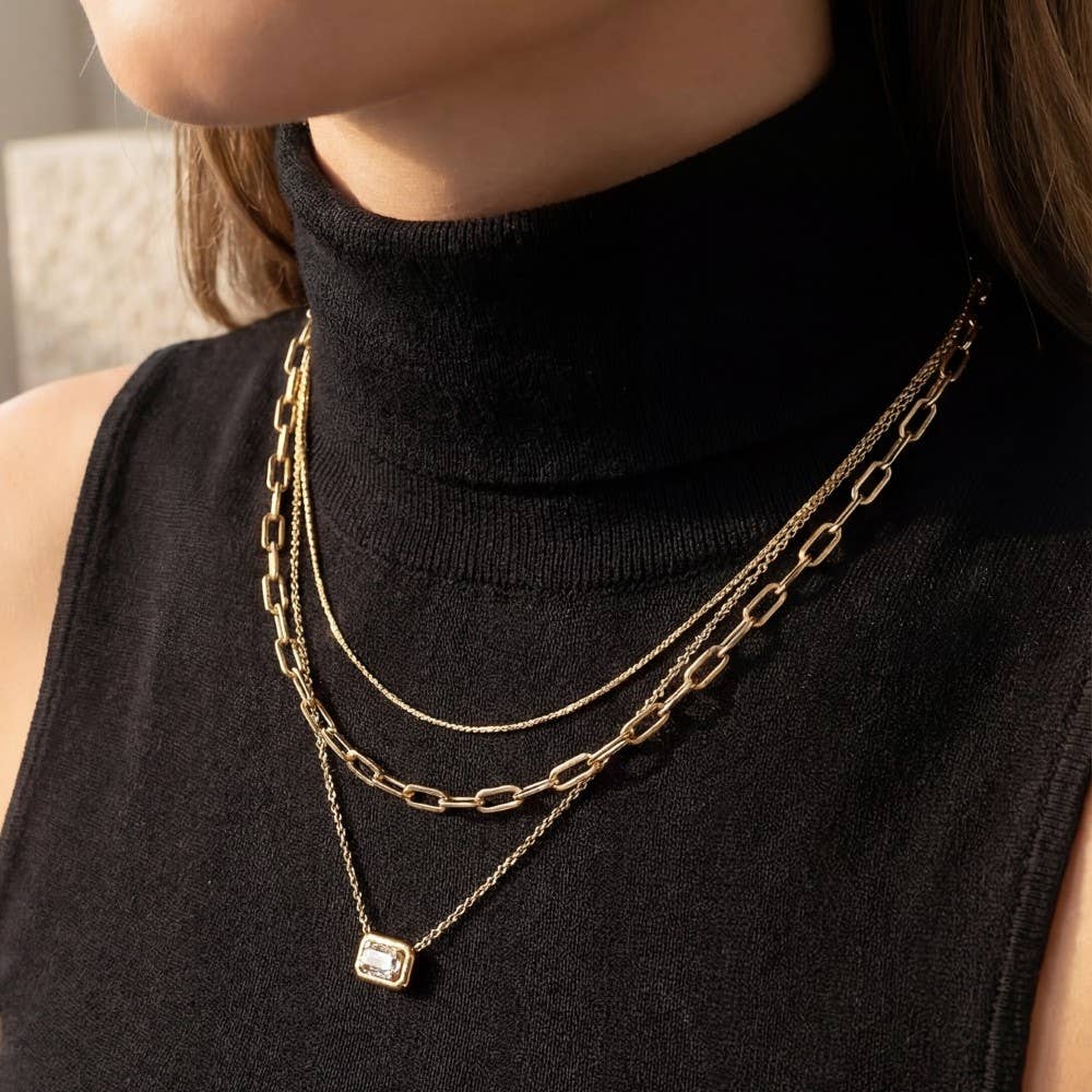 Collier pendentif carré en pierre CZ plaqué or 14K