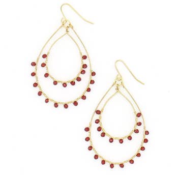 Boucles d'oreilles soutache en forme de larme de vin et métal noir avec détails de perles. Les boucles d'oreilles mesurent 1,5 pouces de large.