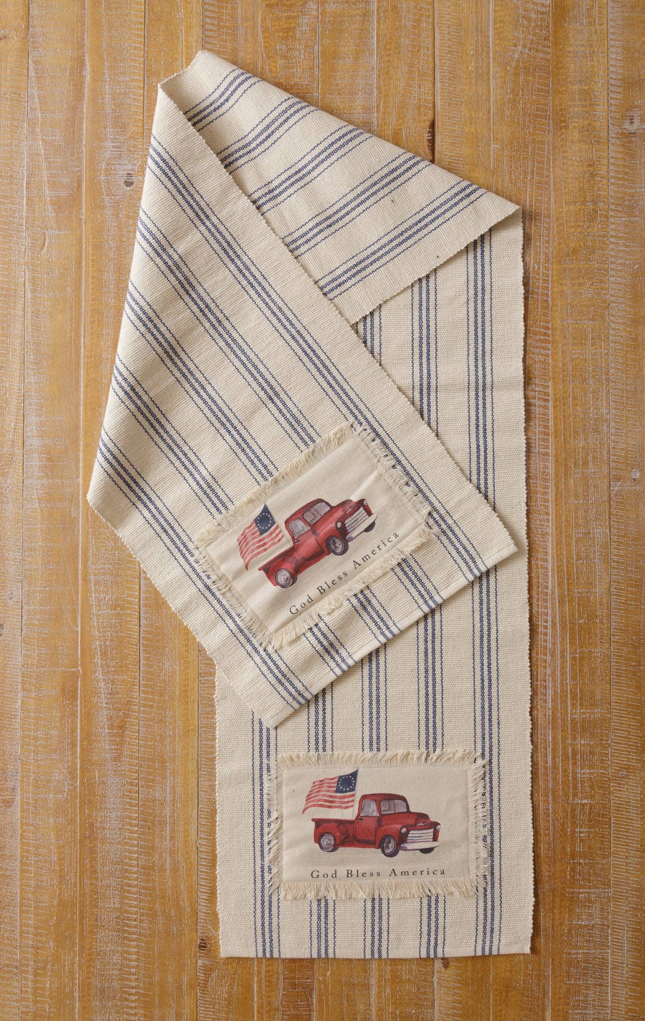 Apportez une touche patriotique à votre décoration intérieure avec notre chemin de table/décoration polyvalente Star Spangled. Mesurant 52 cm sur 229 cm, ce modèle fait à la fois office de chemin de table élégant et de décoration de fenêtre charmante. Orné d'étoiles, il incarne une esthétique américaine intemporelle, idéale pour célébrer les fêtes ou ajouter une touche d'Americana à tout espace.