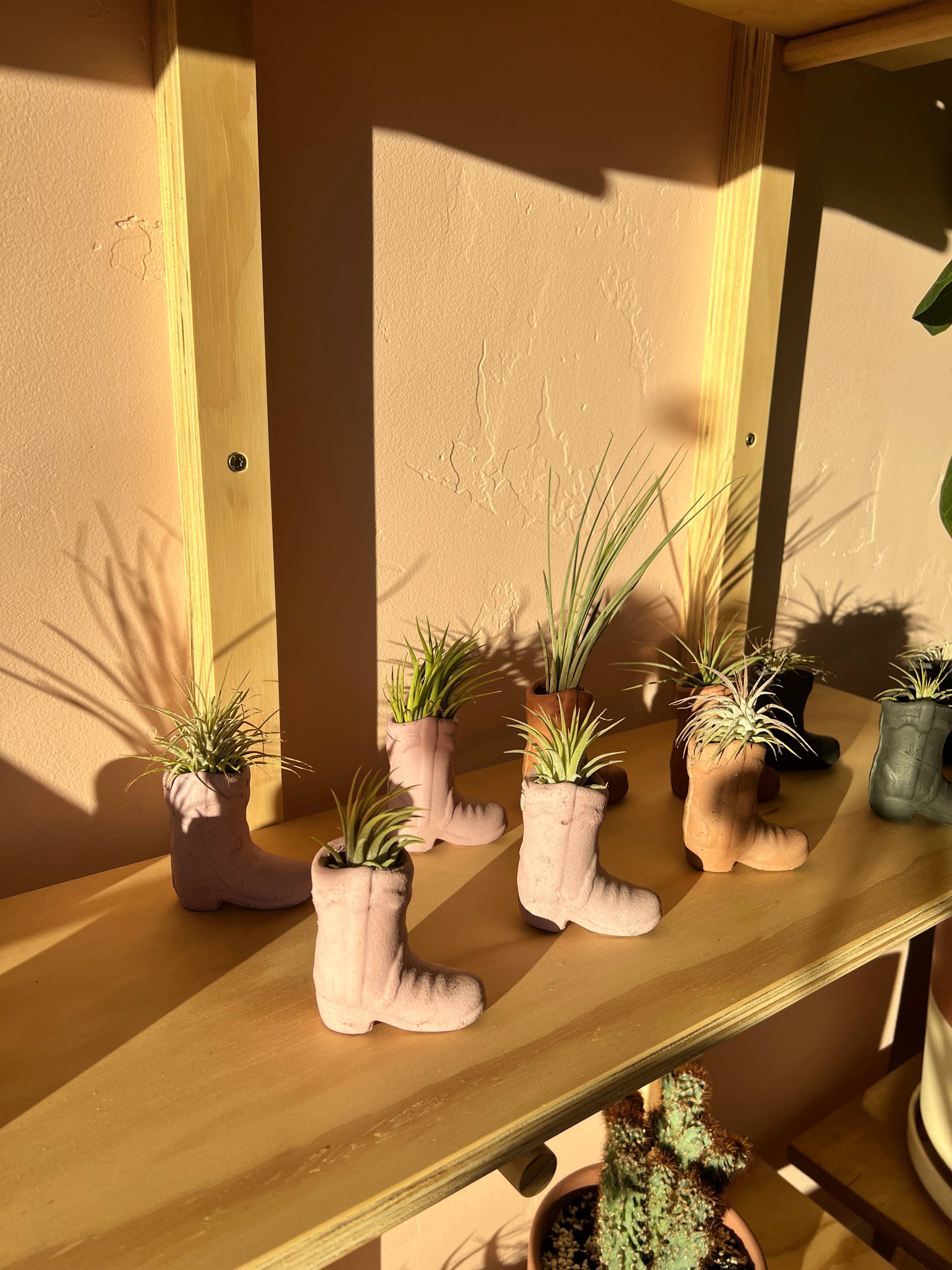Bottes Scootin' Ces mini-bottes ajoutent une touche fantaisiste à n'importe quel espace, en apportant une touche de Far West à votre maison ou à votre jardin. Dimensions : ouverture de 1 po, 3 po de hauteur, 3 po de longueur Les articles sont coulés à la main, ce qui les rend uniques pour vous. Il peut y avoir de légères différences entre chaque article en raison du processus de fabrication à la main. Il s'agit notamment de la couleur, des poches d'air (petites bulles) et de la forme/taille.