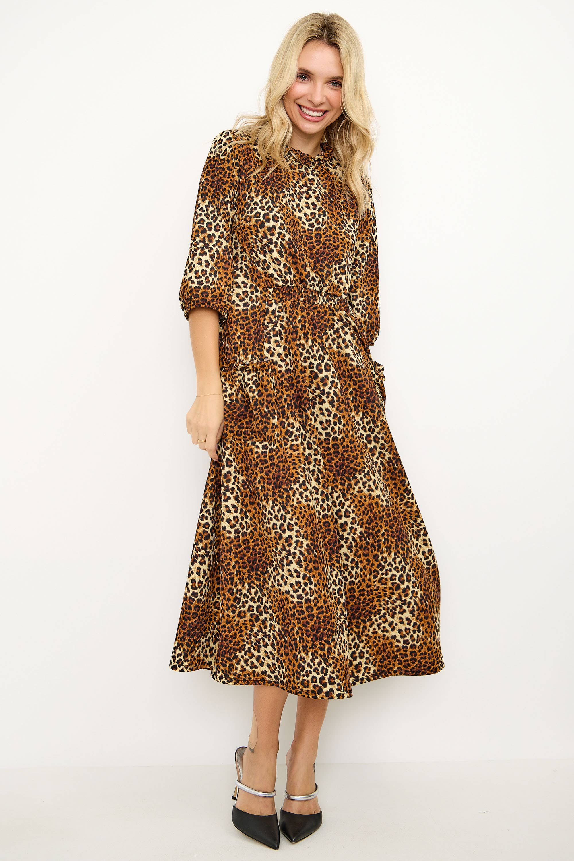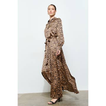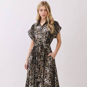 Robe maxi à imprimé animal avec encolure en V et haut blouson, détails en dentelle et fente. Le mannequin mesure 1,68 m et porte une taille Small. - Haut blouson - Manches dolman - Encolure en V profonde - Détail en dentelle - Fermeture éclair - Doublée Extérieur : 100 % polyester Doublure : 100 % polyester