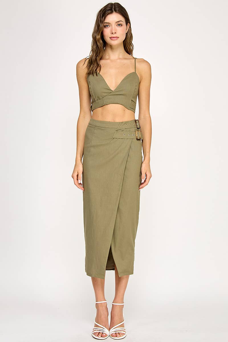 - Numéro de style : LSSST3161 ENSEMBLE JUPE LONGUE CALI CARGO Cuisse fendue Ceinture à cordon Poches avant à rabat Détail de la fermeture éclair avant Top court Sans manches Bretelles supérieures réglables Détail du nœud arrière Détail de la poche avant supérieure 100 % polyester Les détails de la poche avant complètent l'ensemble, ajoutant une touche urbaine à la tenue. Que vous vous rendiez à un brunch décontracté entre amis ou que vous partiez à la découverte de nouvelles destinations, l'ensemble de jupes longues CALI CARGO promet de vous faire remarquer où que vous alliez.
