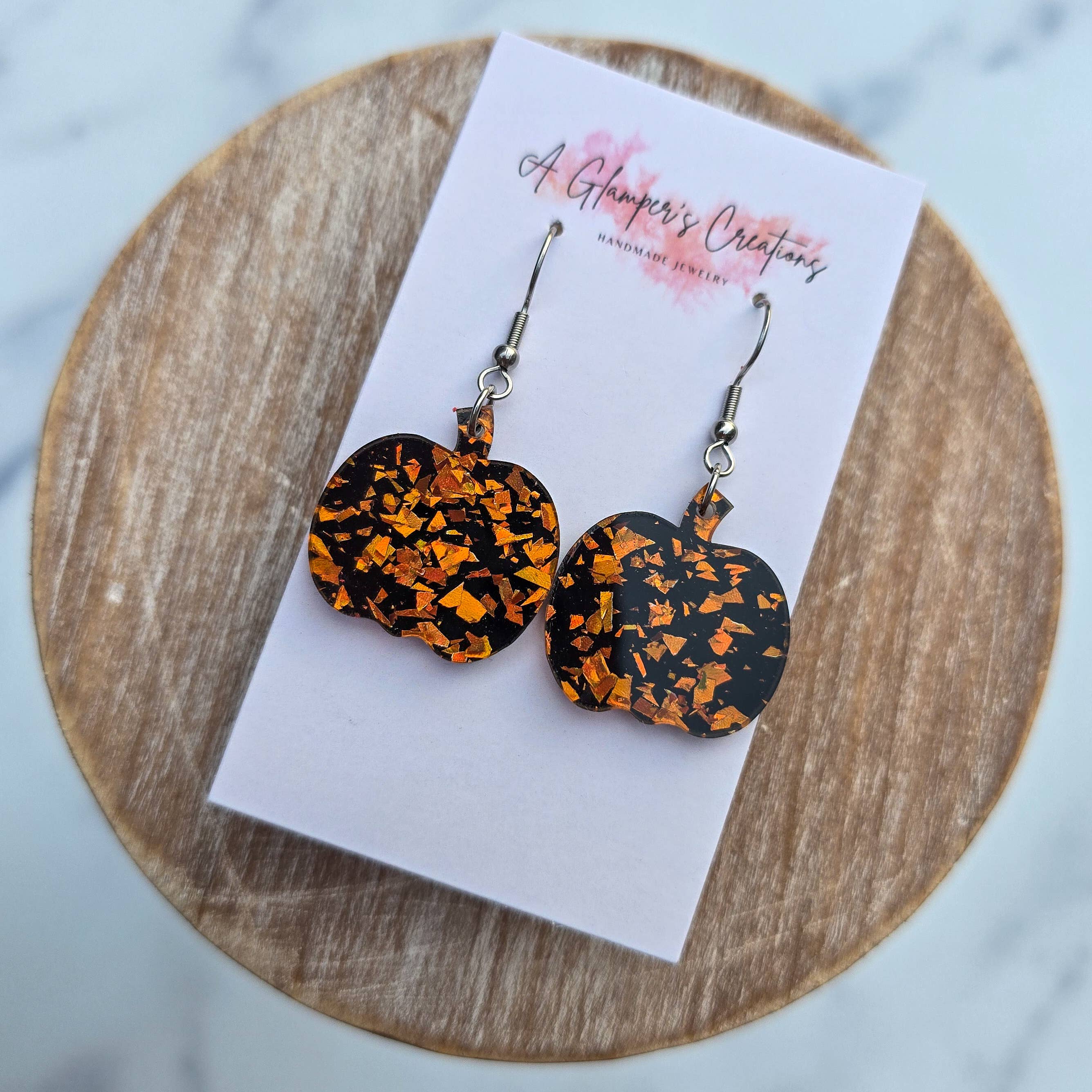 Boucles d'oreilles pendantes en forme de demi-cercle en acrylique orange et gris en forme de citrouille en vente B2B