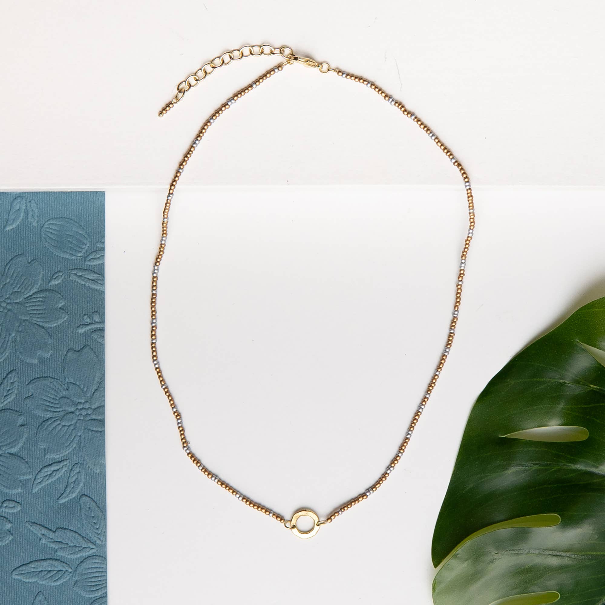 Collier en laiton avec perles, 16 pouces ajustable à 18 pouces.
