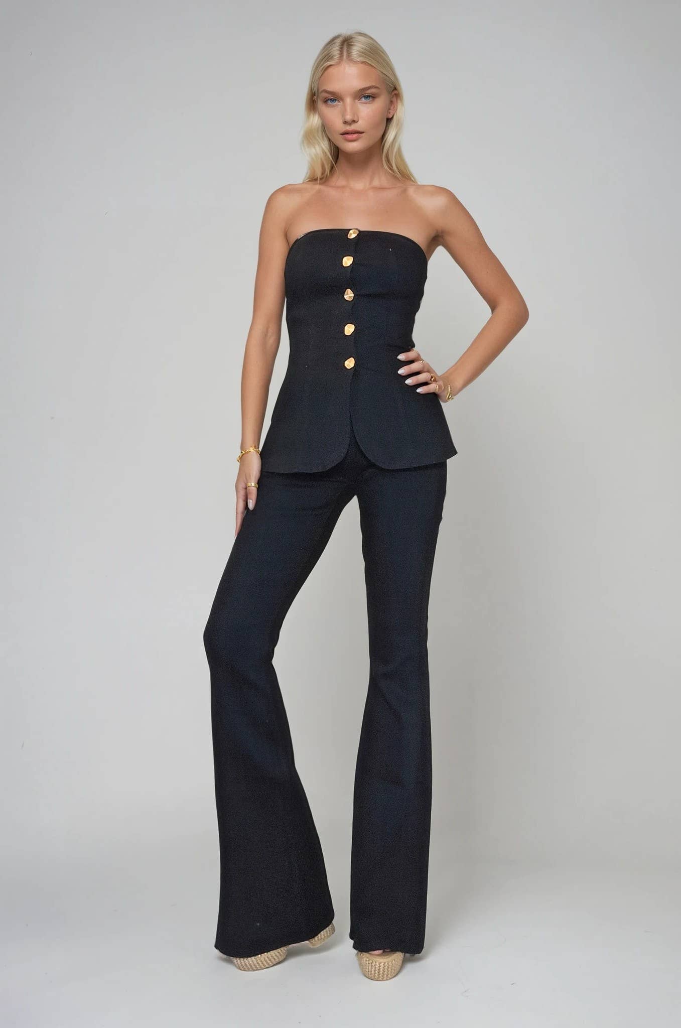 Taille Haute Colonne Droite Boutonnée & Poches Passepoilées Arrière en vente B2B