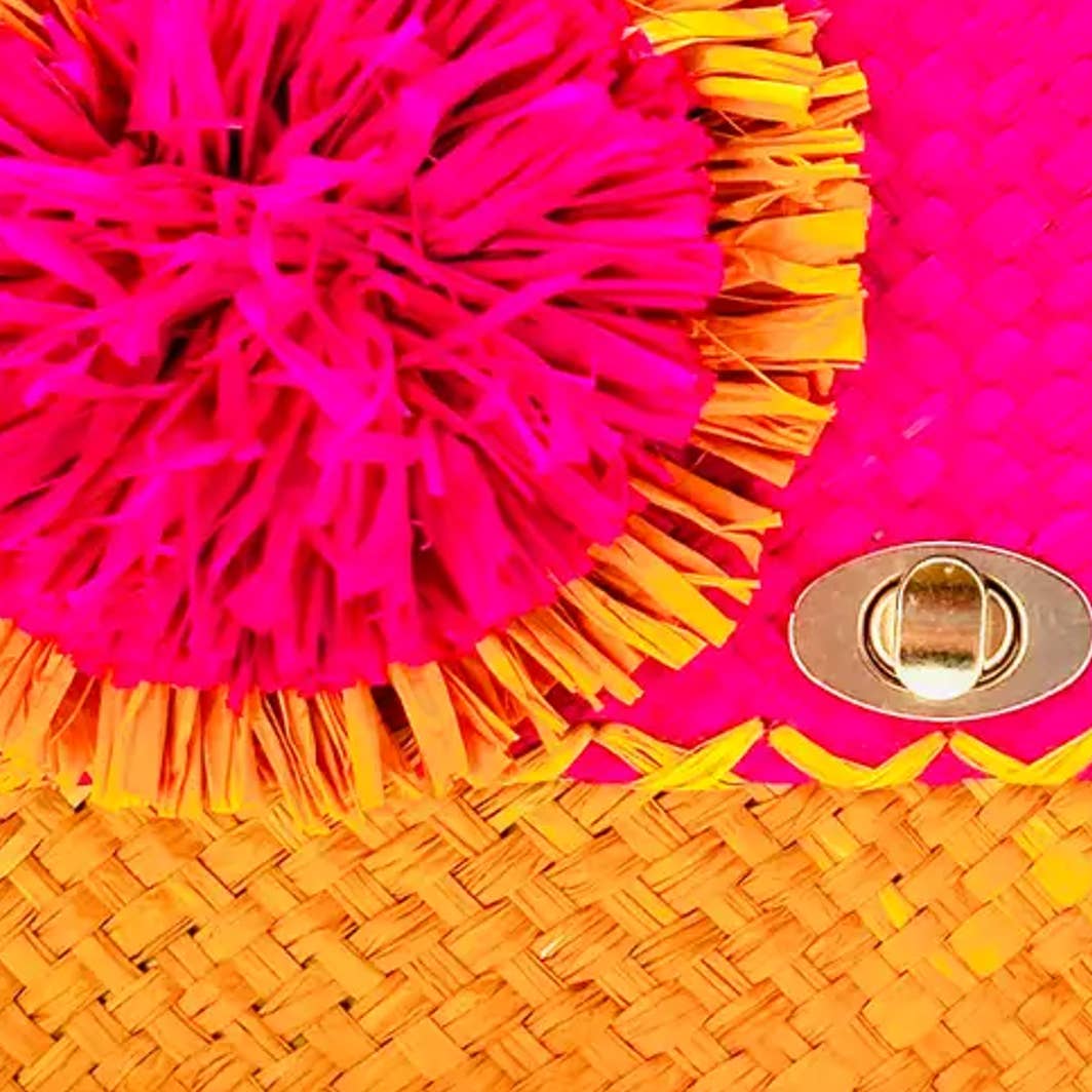 La pochette Sophie Straw avec bordure en franges brutes ajoute une touche de plaisir exquise à n'importe quel look. Fabriquée à la main avec du raphia tissé et une bordure en franges brossées, elle offre une texture unique et une structure robuste. La pochette est sécurisée par une fermeture à tourniquet et comprend une poche intérieure zippée pour un rangement pratique. Créez un look intemporel avec cet accessoire unique en son genre. Dimensions : 33 cm x 16,5 cm Contenu : fibre de palmier raphia, doublure en tissu, fermeture à tourniquet en métal. Fabriqué à Madagascar.
