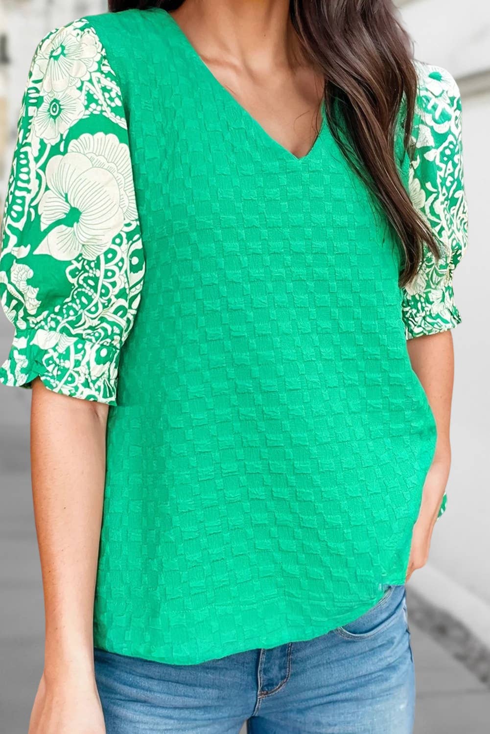 ST3755 - TOP PÉPLUM EN SATIN À IMPRIMÉ ANIMALIER ET COL EN V EN VENTE B2B