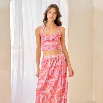 Un ensemble haut et jupe en tissu imprimé -IT13092-SET