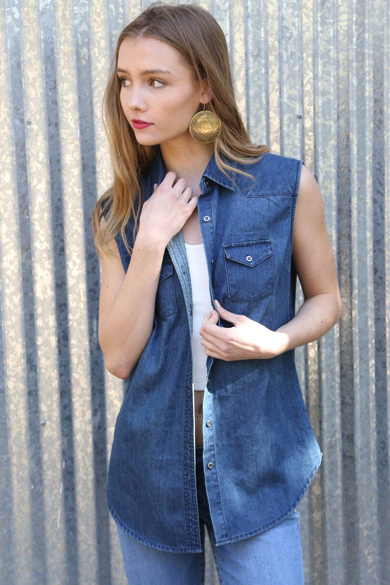 Haut tube en denim extensible à patte de boutonnage en vente B2B