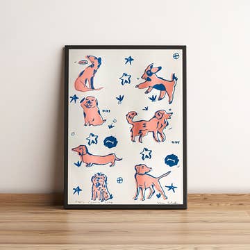 Oh, hot dog ! Un adorable teckel porte un costume de hot dog appétissant dans cette impression bicolore. Impression Risograph en rouge vif et jaune tournesol. - 20 x 25 cm - Encre écologique à base de végétaux - Imprimé sur papier cartonné 100 % recyclé, certifié FSC avec fibres apparentes - Plaque de support et pochette plastique incluses