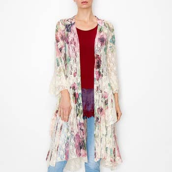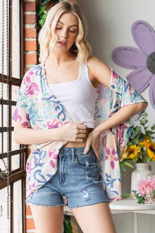 95 % POLYESTER, 5 % ÉLASTHANNE CARDIGAN OUVERT À IMPRIMÉ FLORAL TROIS-QUARTS AVEC FRONCES TAILLE DU MANNEQUIN : HAUTEUR 5'8" », BUSTE 32" », TOUR DE TAILLE 24" », HANCHES 35" » TAILLE DE PORT : PETIT *La couleur du vêtement peut légèrement varier à l'arrivée en raison de l'éclairage professionnel, également en fonction de l'appareil que vous utilisez pour magasiner*