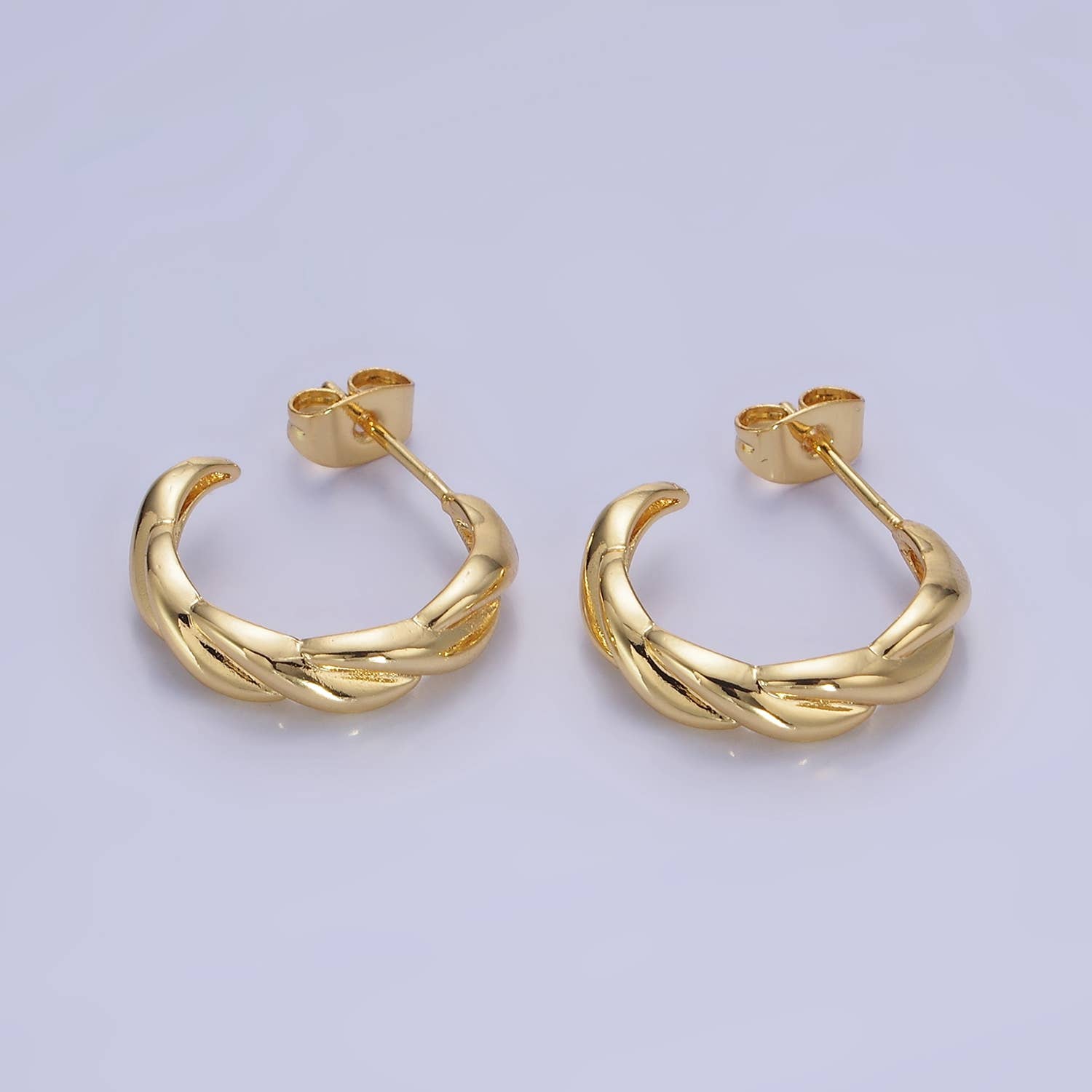 Boucle d'oreille en forme de tige torsadée en or 14 carats en vente B2B