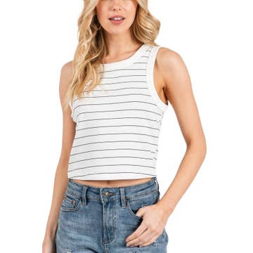 Haut sans manches à col rond en maille côtelée rayée en coton en vente B2B
