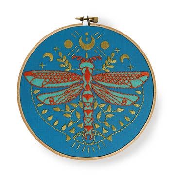 Ce kit comprend du fil dentaire, un cerceau de 4 pouces, une aiguille et des instructions. Le motif est parfait pour ceux qui souhaitent s'essayer à la broderie pour la première fois en apprenant quelques points clés : les nœuds coloniaux, le point fendu et le point long et court.