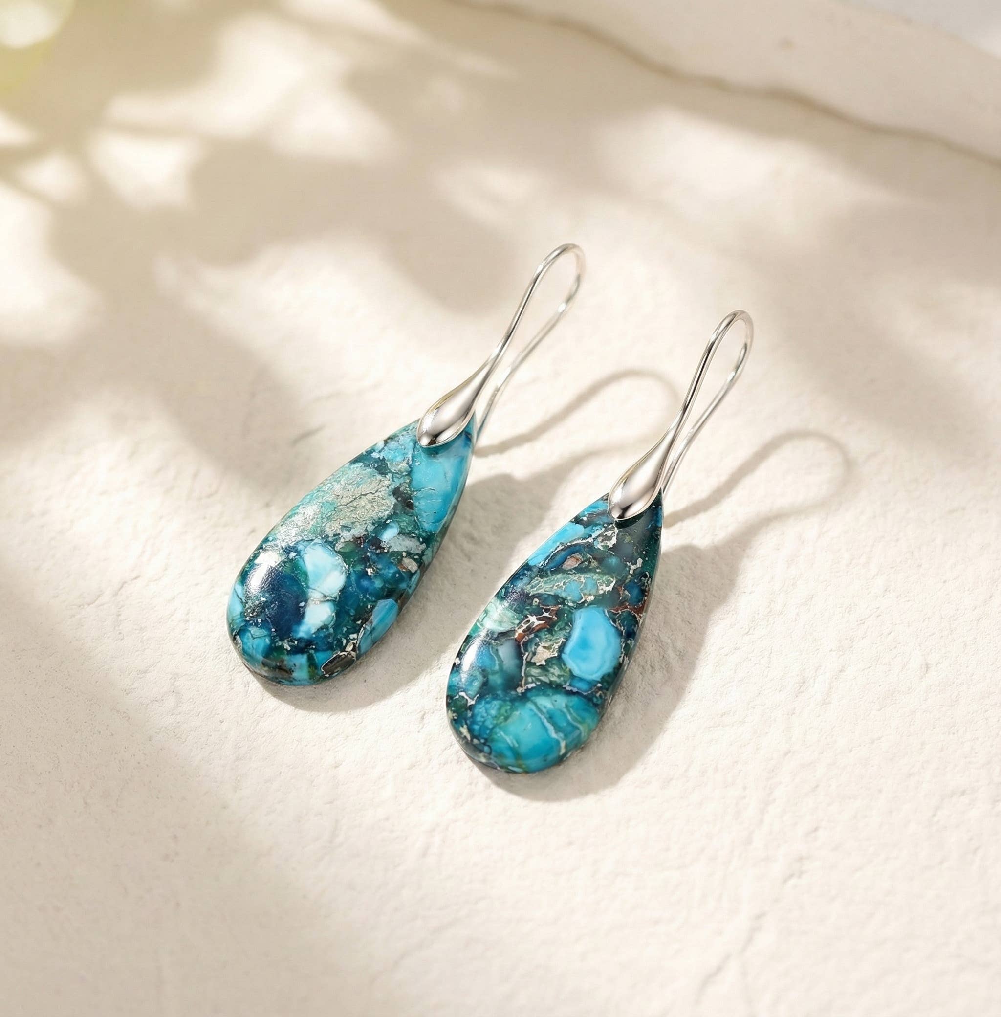 Type de crochet : Crochets français Type d'argent : Argent sterling 925 Taille des boucles d'oreilles : 35x22mm (1 3/8x7/8") excl. crochets Poids des boucles d'oreilles : 7 grammes/chacune Matériau des boucles d'oreilles : Turquoise Remarque : Boucles d'oreilles réelles illustrées