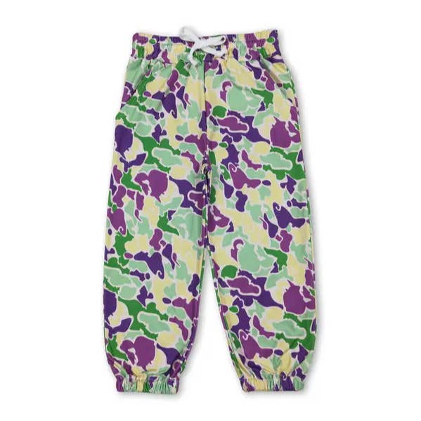 Jeans Mardi Gras pour femmes adultes à rayures violettes, vertes et jaunes en vente B2B