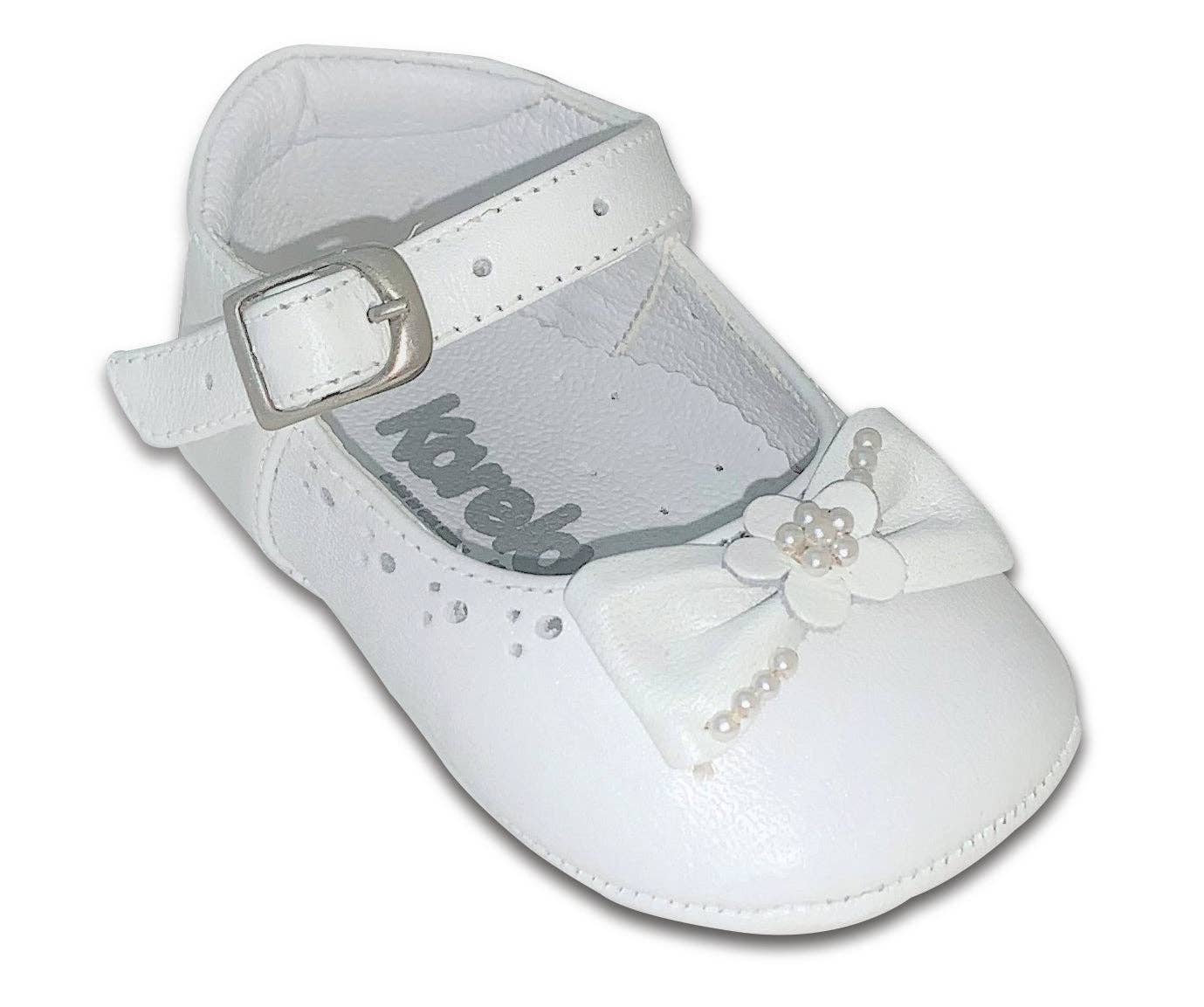 Chaussures de pré-marche en cuir blanc à bretelles croisées. Réf. 3489