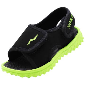 Norty - Sandale de sport à bretelles réglables pour petits garçons et filles, cool et confortable, légère et flexible, double fermeture à sangles auto-agrippantes réglables sur la partie supérieure pour un ajustement sûr, assise plantaire profilée, tissu imperméable, matériau entièrement fabriqué par l'homme, fabriquée en Chine, #41196 SANDALE DE SPORT PRATIQUE AU QUOTIDIEN : à porter à la piscine ou à l'extérieur pour la journée, n'importe où ! Facile à enfiler et à enlever : les doubles bretelles supérieures réglables permettent un ajustement sûr et personnalisé. Robuste et confortable à la fois : assise plantaire moulée avec semelle légère antidérapante. Portez-le pour jouer sur le sable, l'herbe ou même dans l'eau.