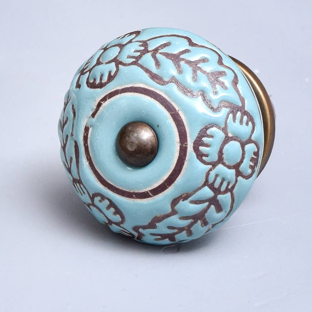 Bouton de tiroir en céramique élégant à motif floral bleu et turquoise en vente B2B