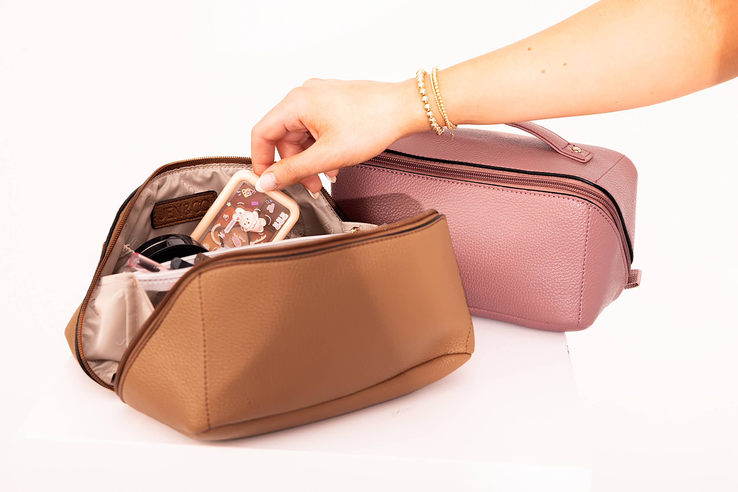 Trousse de maquillage en similicuir « THE MAKE UP BAG » avec organiseur et poignée amovible en vente B2B