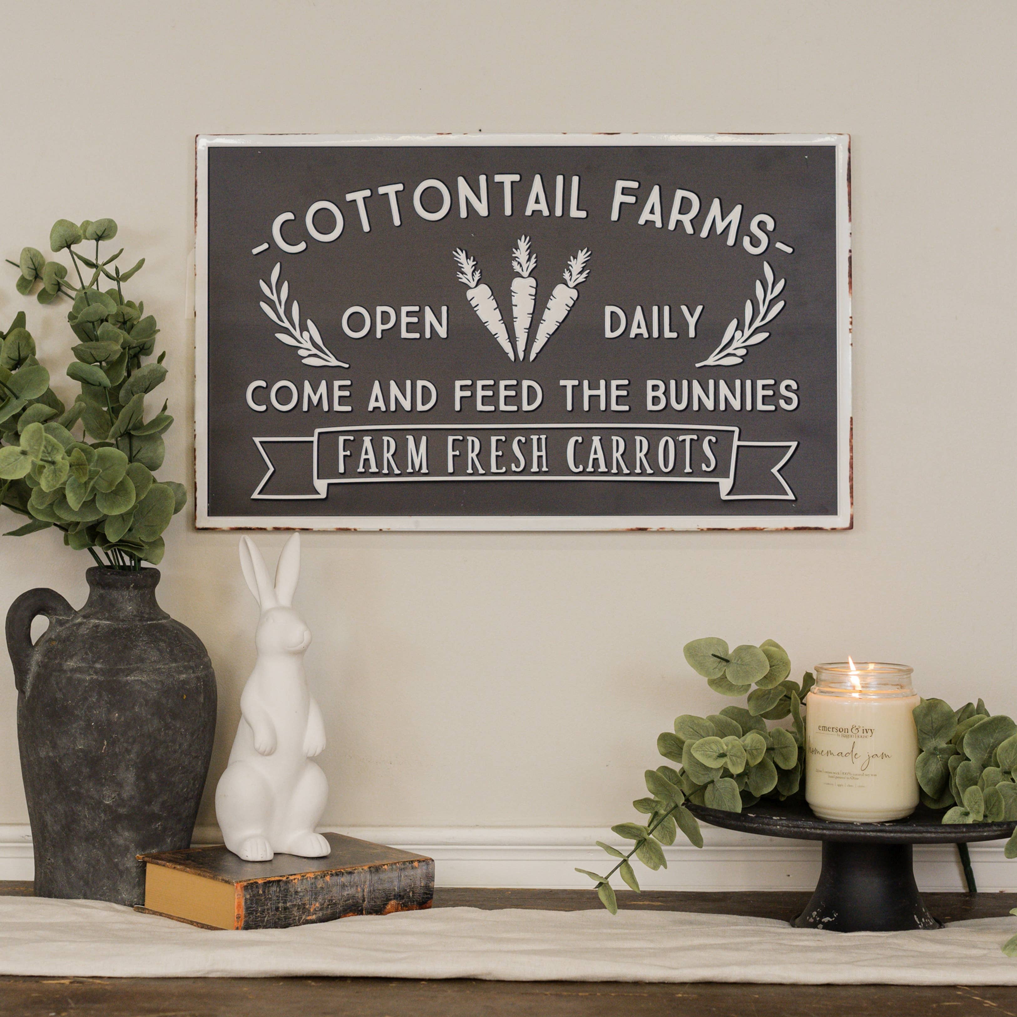 Panneau de Pâques en bois de Cottontail Farms, décoration printanière en vente B2B