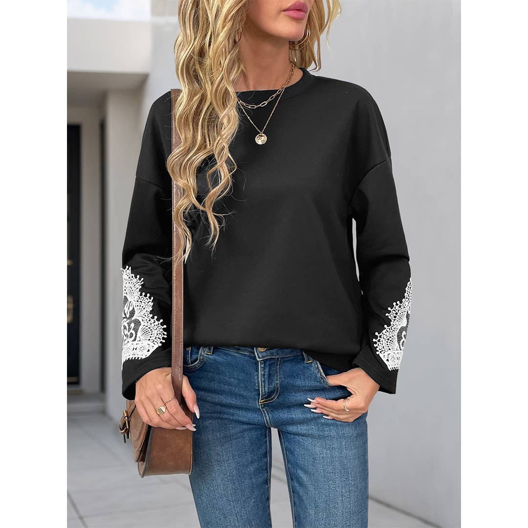 Sweat-shirt romantique à manches en dentelle brodée en vente B2B