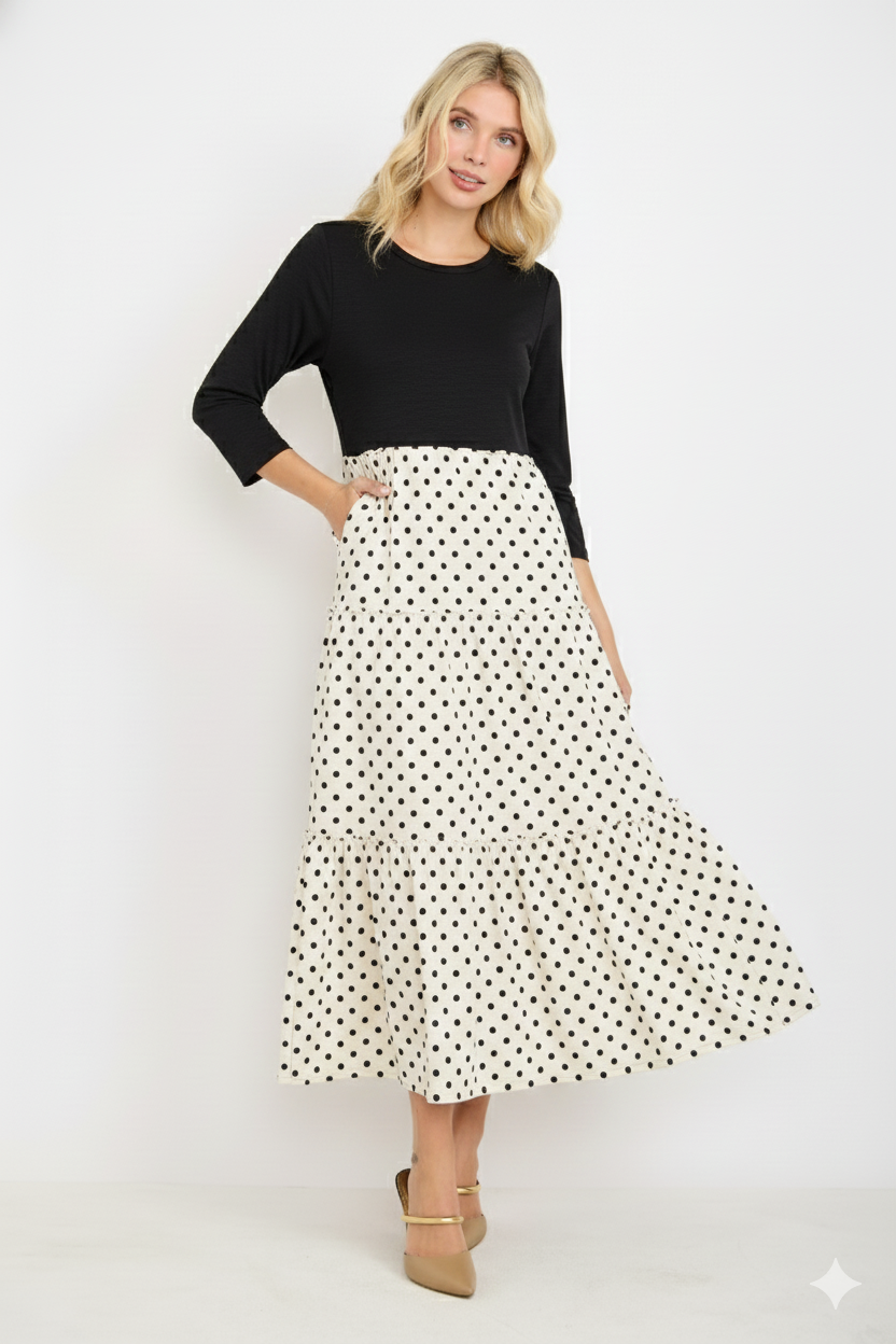 Matière : mélange de coton et polyester. Style : coupe ample avec manches longues. Caractéristiques : poches pratiques, motif à pois, col montant tendance. Occasions : parfaite pour un style décontracté et urbain. Saisons : idéale pour le printemps et l'automne. Cette robe mini à pois avec poches combine confort et modernité grâce à sa coupe ample et son col montant. Un choix élégant pour les journées plus fraîches tout en restant facile à porter.