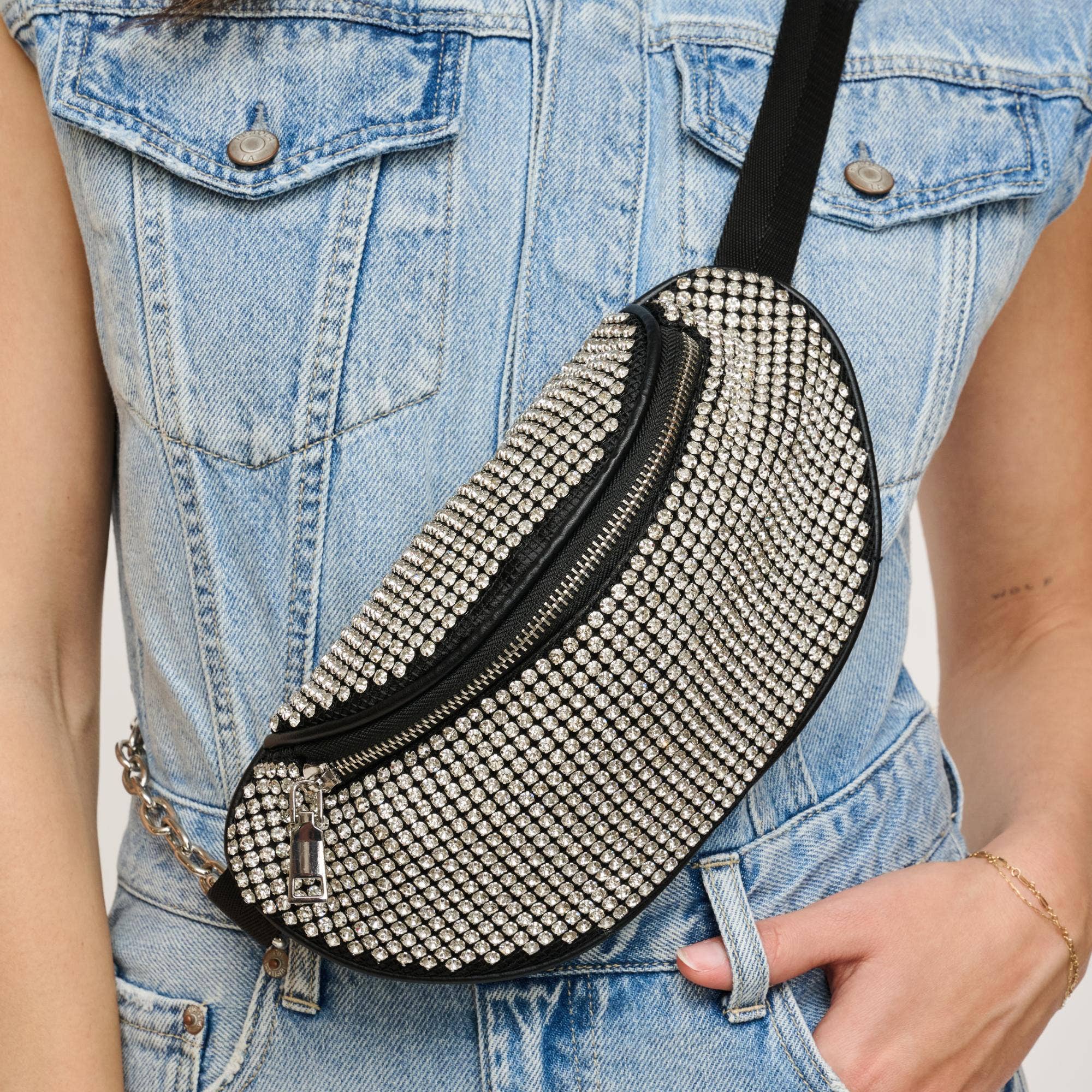 Le sac avant-gardiste en forme de selle et les points de fouet uniques sont tout ce dont vous avez besoin pour rester au frais cette saison. Grâce au rabat rabattable sécurisé par un puissant fermoir magnétique, vous pouvez emporter vos affaires essentielles en toute confiance. À l'intérieur, vous trouverez une doublure en tissu et une poche zippée pour plus de sécurité. Le sac est également doté d'une bandoulière pour un style sans effort en semaine et d'une bandoulière amovible supplémentaire pour les soirées décontractées. * Type d'article : sac de soirée * Matériau : strass * Fermeture : aimant *Hauteur de la poignée : 9,5 pouces * Détails extérieurs : revêtement intégral en strass, poignée en strass * Caractéristiques intérieures : doublure en tissu