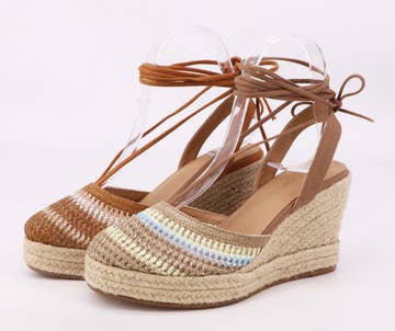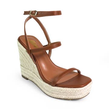 Sandale en daim couleur cuir avec tressage artisanal en jute. Compensée basse et semelle intérieure rembourrée pour un confort total. Cuir | Fermeture à boucle | Semelle en liège | Hauteur 3-7 cm