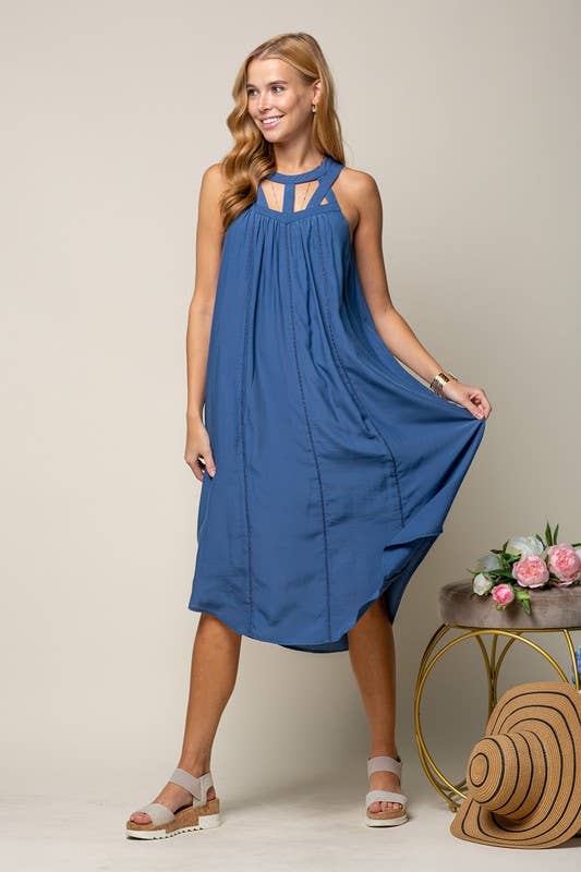 Robe en jean plissée sans manches à col en V