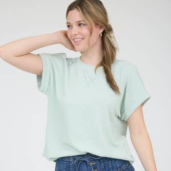 HAUT EN MAILLE CÔTELÉE À MANCHES COURTES ET COL ROND EN VENTE B2B